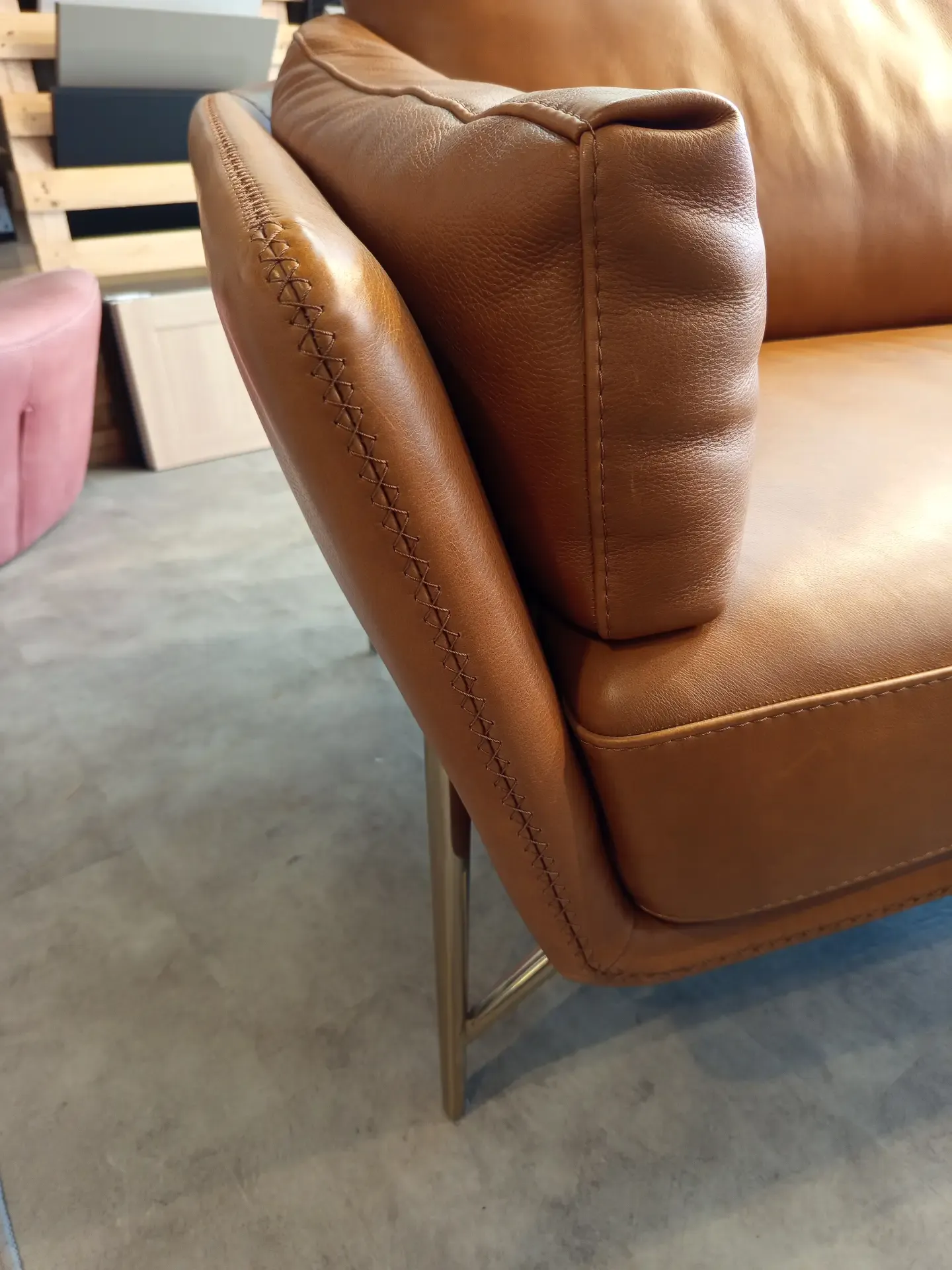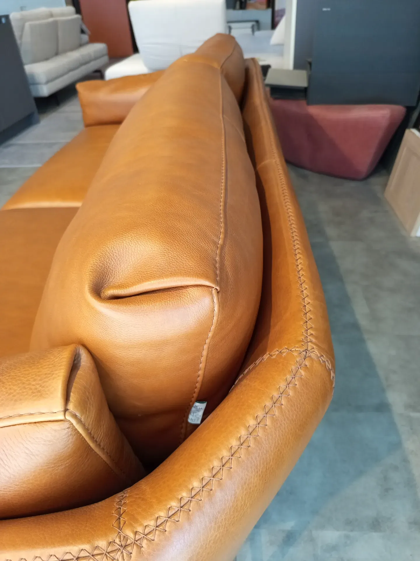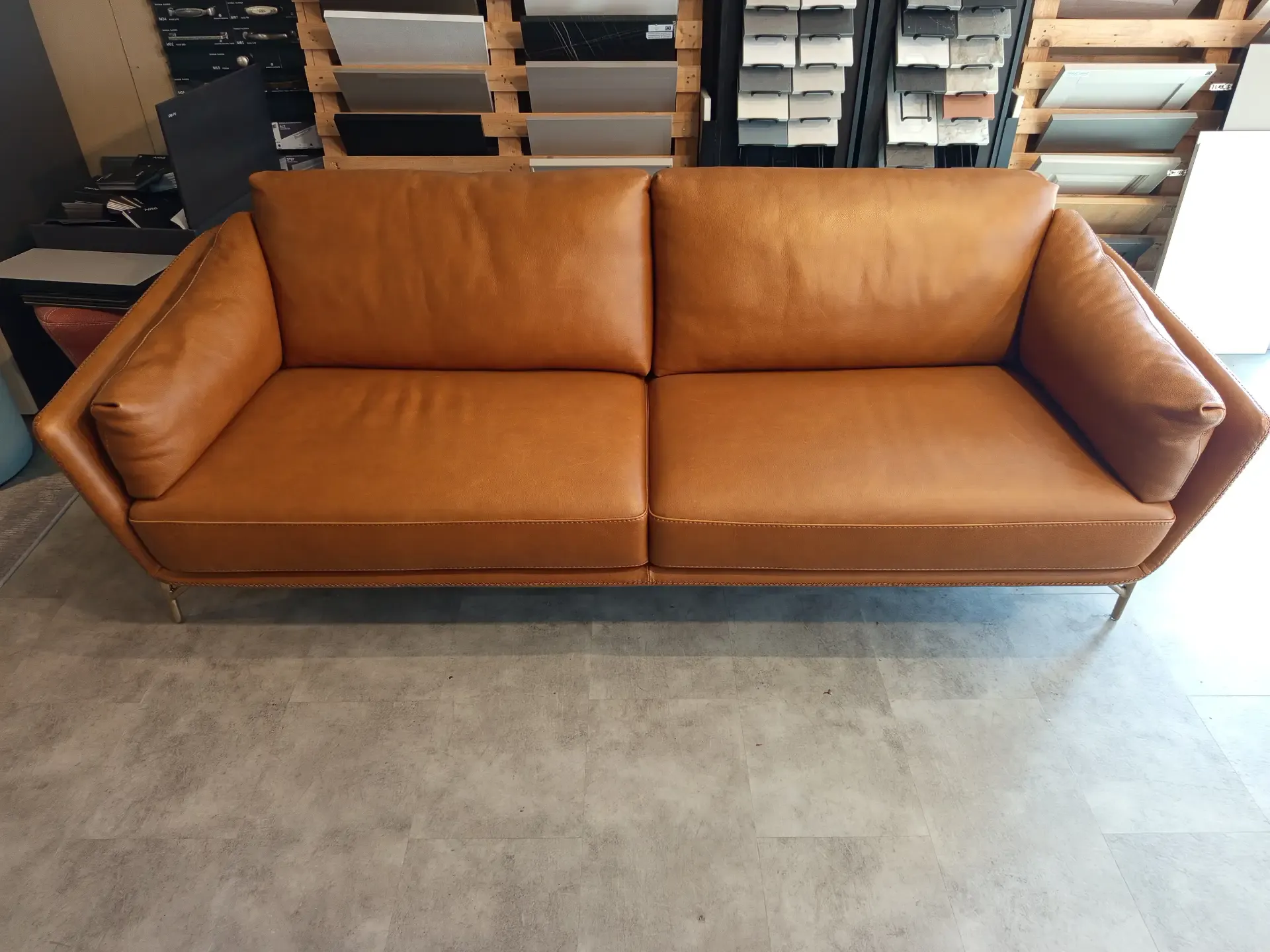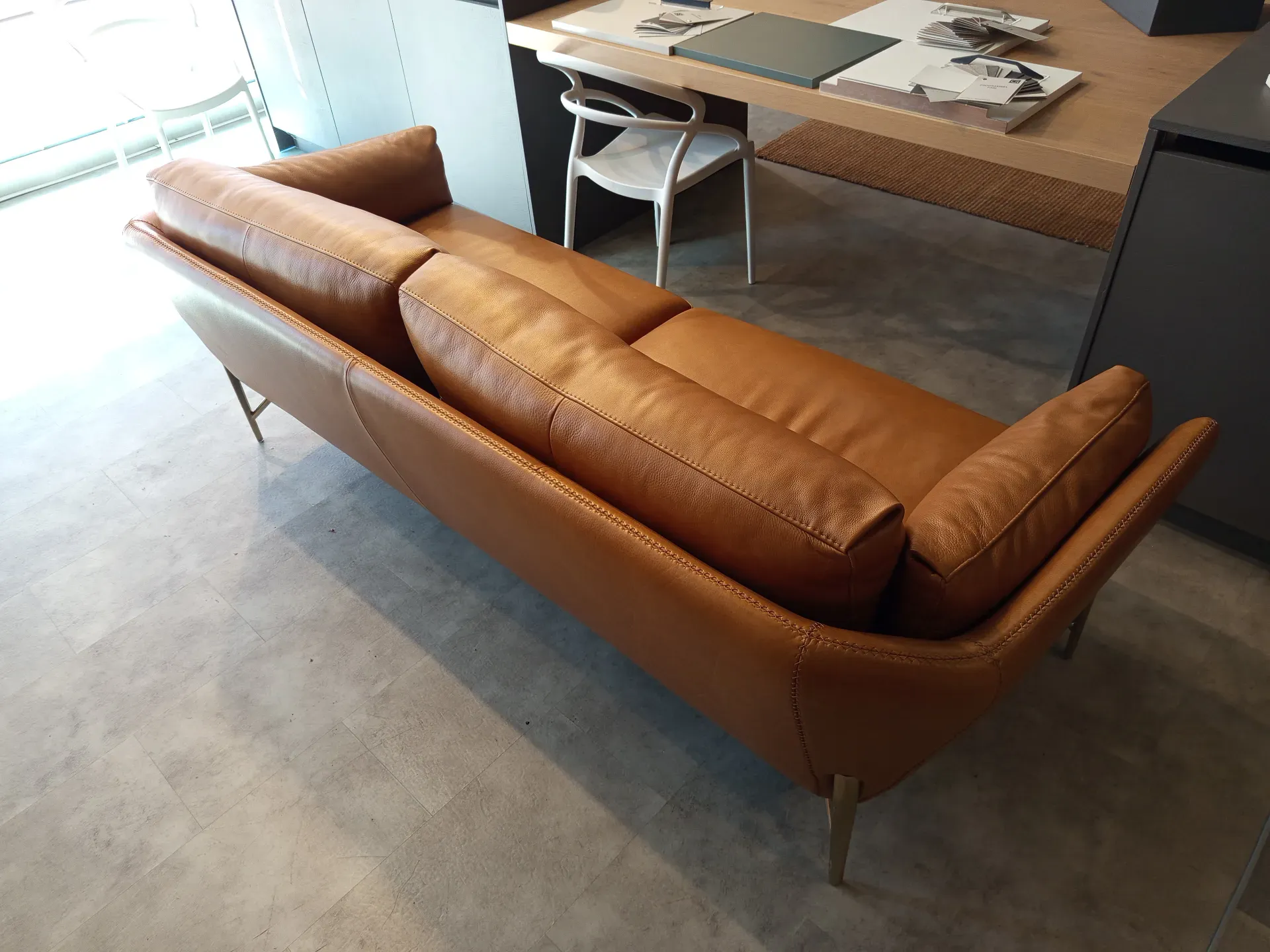 Divano Calia Italia Mod. Venere in in pelle Nature Cognac L.220 P.90 H. schienale 80 H. seduta 45 di altissima qualità e design. Pezzo Unico. Prezzo scontato. Visionabile su appuntamento presso il nostro showroom.