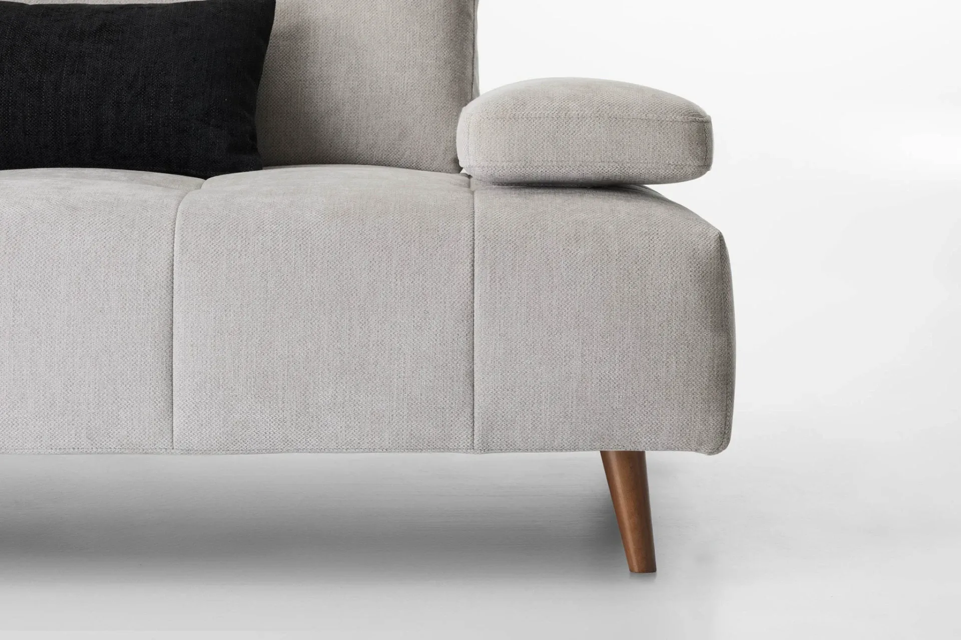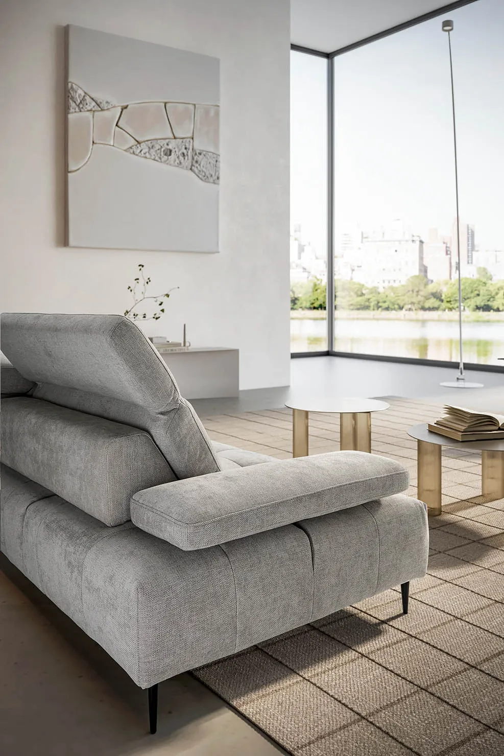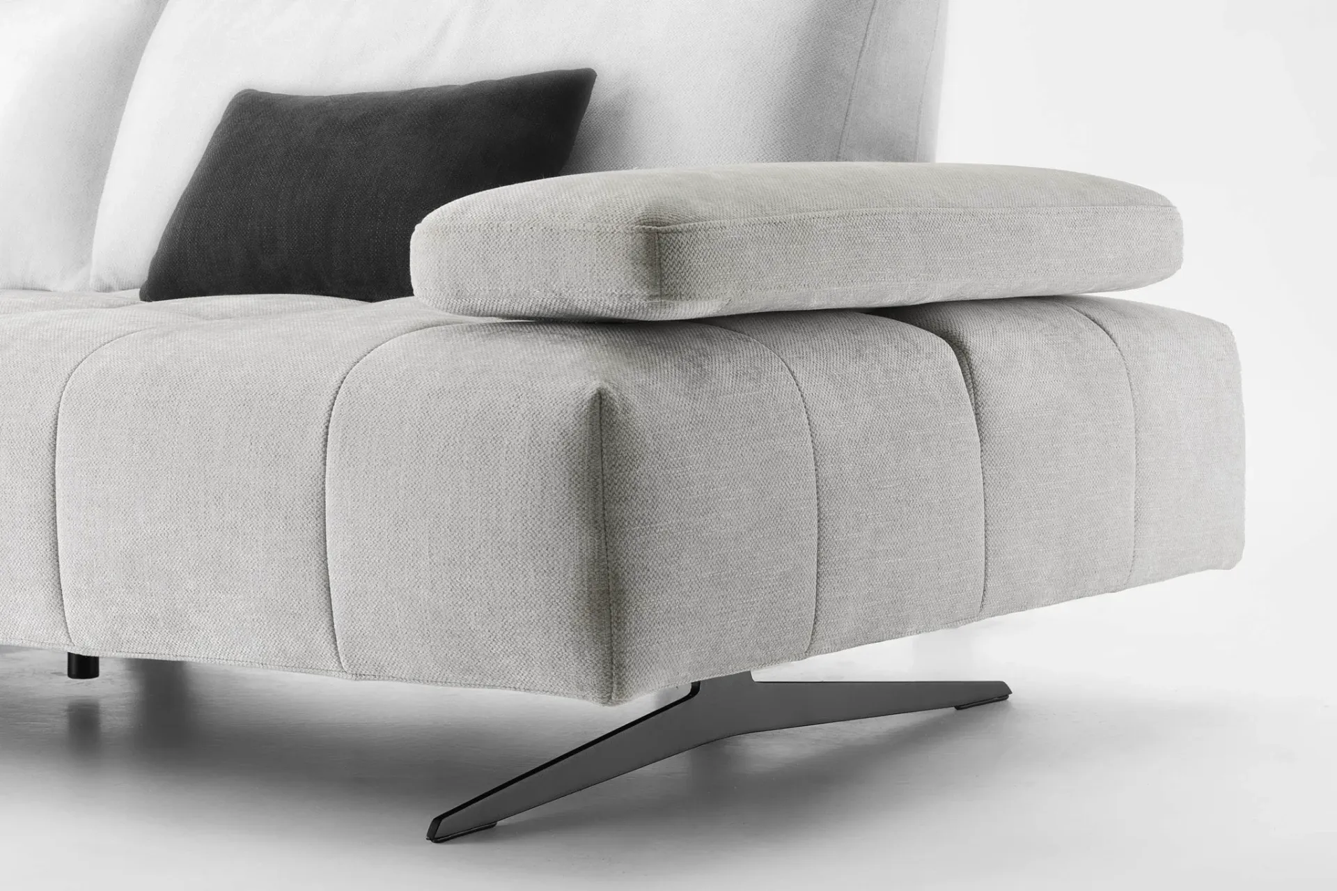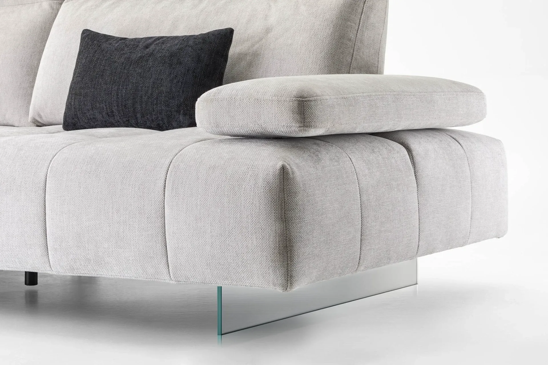 Il profilo è slanciato dai piedini alti 15 cm che alleggeriscono i volumi complessivi, mentre la seduta ampia in Tecnoform un sandwich di poliuretani indeformabile con inserto in memory foam invita al comfort profondo, ideale tanto per la conversazione quanto per i momenti di riposo.