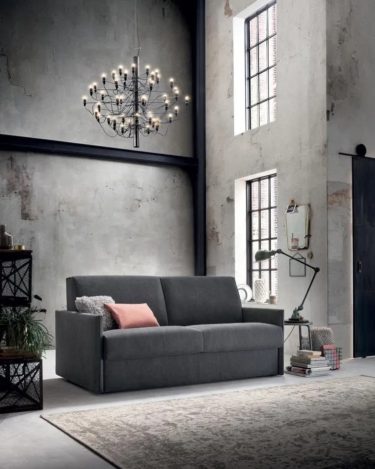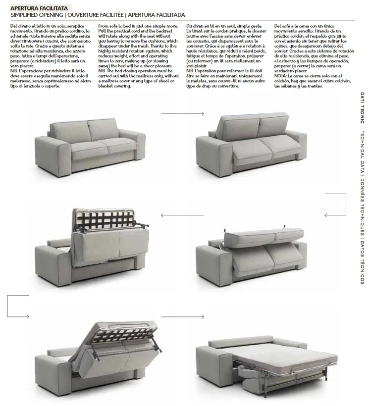 Meccanica con tubolare d acciao a sezione quadra verniciata con polveri epossidiche e dotata di meccanismo testato per oltre 2.000 cicli di apertura. Il piano dormita supporta il peso di due persone adulte di peso medio senza deformarsi.