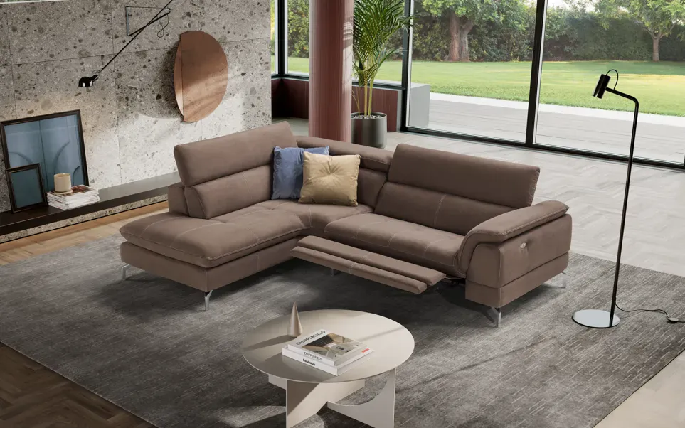 DIVANO MOD. VANCOUVER COLLEZIONE ESCLUSIVA IN TESSUTO CAT MINIMA L. 292 X P. 230 2 POSTI MAX + ANGOLO TERMINALE, A RICHIESTA RELAX ELETTRICA, HA IMPORTANTI POGGIATESTA REGOLABILI - DISPONIBILI IN PELLE E ALTRI TESSUTI