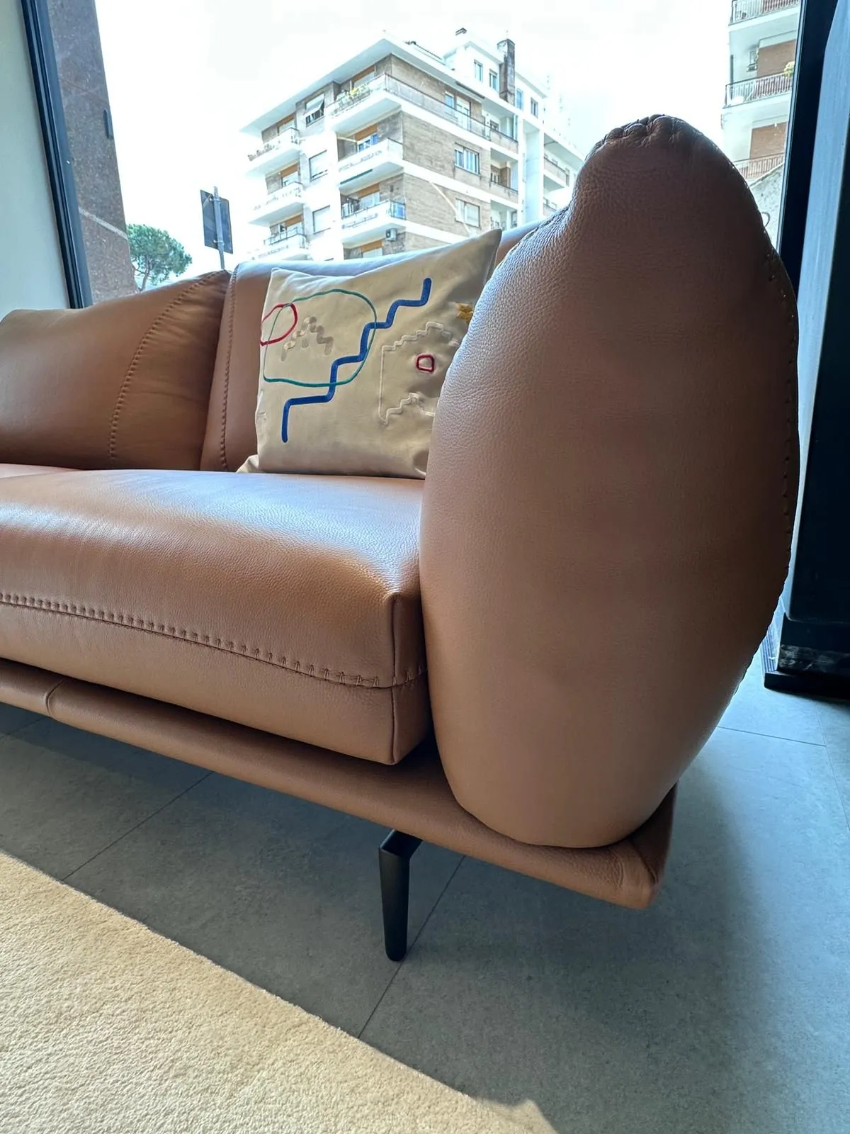 MODELLO DRAGEES RIVESTIMENTO PELLE ANTARES COL CUOIO PIEDINI BRONZO ANTICO IMPUNTURE TONO SU TONO MISURE: L 225/89'' H80/31'' D103/41'' SH43/17'' SD58/23'' DIVANO PRONTA CONSEGNA PUNTO VENDITA ROMA LARGO CARDINALE GALAMINI 14 NON SONO PRESENTI DIFETTI STRUTTURALI E SUL RIVESTIMENTO Designer: Centro studi calia Struttura: legno di faggio, abete e multistrato ricoperto di poliuretano espanso. Sistema di molleggio: cinghie elastiche. Imbottitura Seduta: cuscini di seduta in poliuretano espanso ecologico ricoperta con falda 100% poliestere. Imbottitura Spalliera: spalliera in fiocco (fiocchi di fibra sintetica) ricoperto con falda 100% poliestere. Imbottitura Bracciolo: bracciolo in fiocco (fiocchi di fibra sintetica) ricoperto con falda 100% poliestere. Sfoderabilità: non possibile. Cuciture: cucitura decorativa (ricamo n°8 _ 1 ago), presente su cuscino di seduta, spalliere e bracciolo, realizzabile su richiesta con filo a contrasto nelle varianti di colore disponibili. Il rivestimento in pelle prevede tagli differenti rispetto al rivestimento in microfibra (o tessuto). Componenti: Le versioni "tavolino" e "terminale tavolino" sono dotate di prolungamento della base del divano, corredata di elemento tavolino in metallo con piano effetto marmo e struttura in finitura graubraun, in alternativa è possibile scegliere tra le finiture: satinato, titanio e rame. Piano tavolino effetto marmo o su richiesta e con supplemento di prezzo in vetro finitura bronzo. Piedi di serie: Piede h 13,5 cm. in metallo finitura di serie graubraun. In alternativa è possibile scegliere tra le finiture standard presenti nell'apposito campionario. Il campionario prevede altresì finiture "speciali" disponibili con sovrapprezzo previa verifica della fattibilità in produzione. Alcune versioni potrebbero essere dotate di piedi nascosti che hanno funzione strutturale. Note: Le versioni " 1b tavolino" sono componibili.