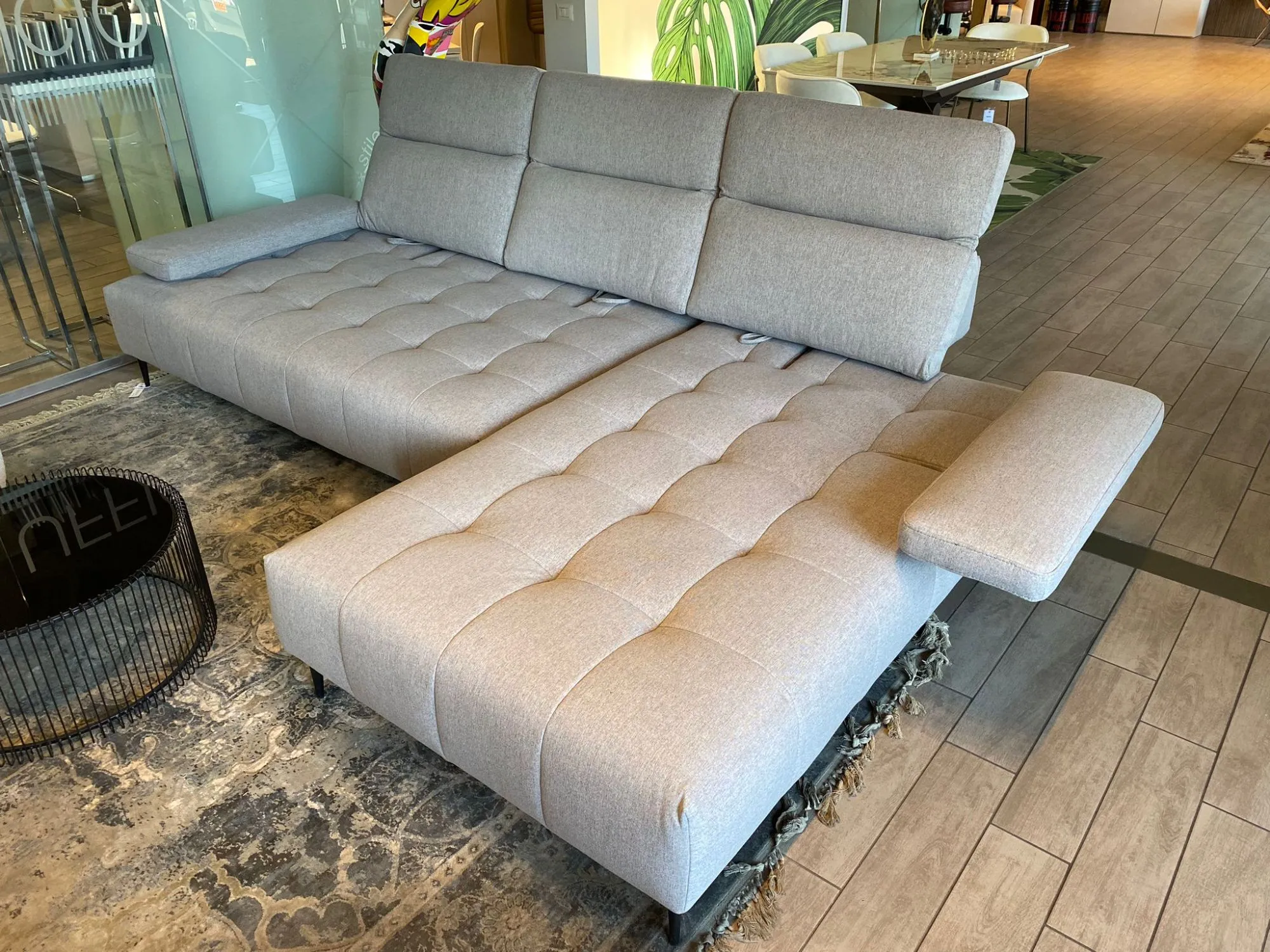 DIVANO MOD. JOPLIN CON SCHIENALE RETRATTILE 3P + CHAISELONGUE CON PIEDINO SLIM H 15 METAL NERO L 304/358 x P 122/145 - 171/204 x H 84/106 TEX. BREZ COL. 001 CAT.B