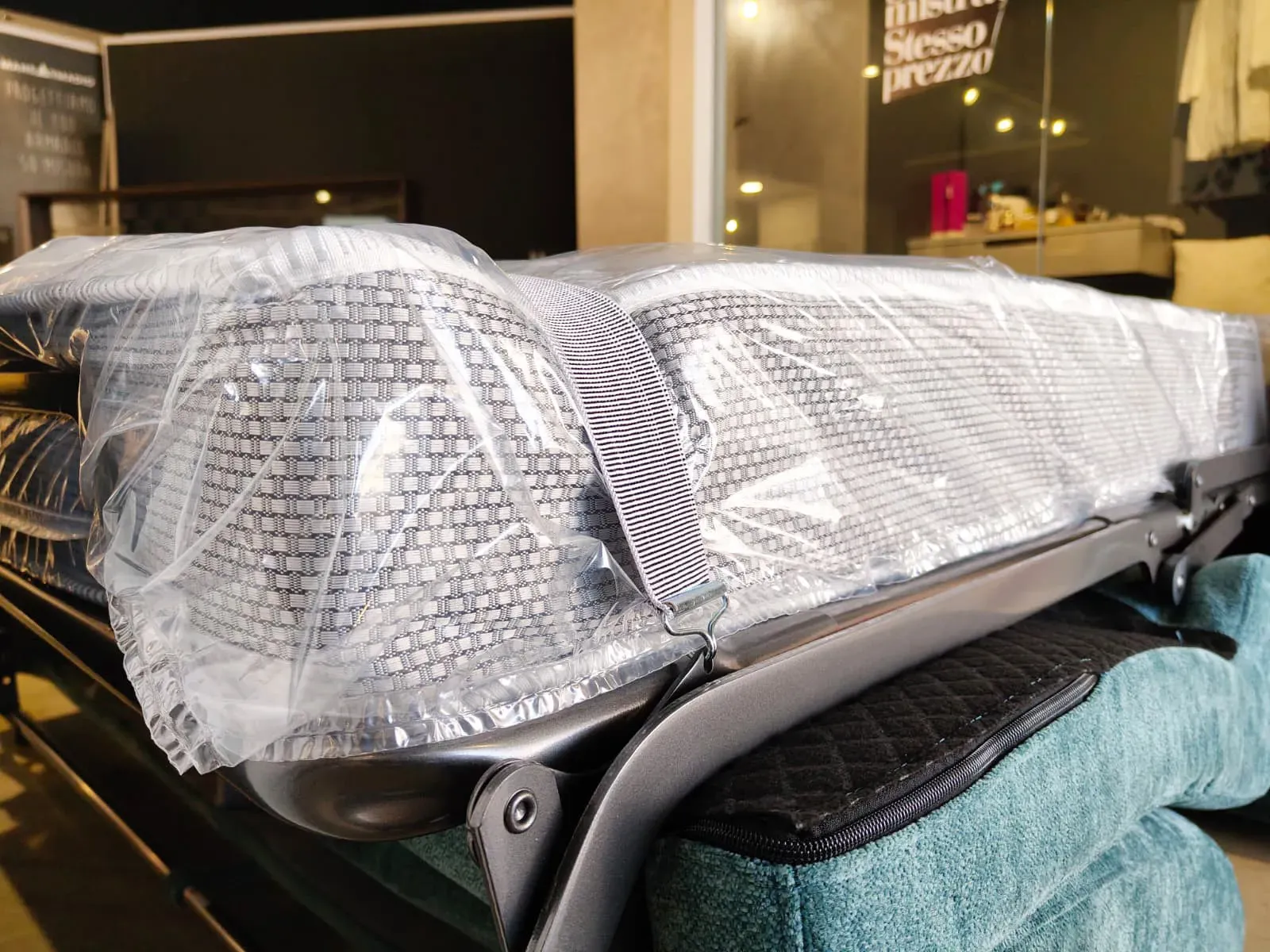 Il vero punto di forza risiede nella sua trasformabilità immediata: grazie a un meccanismo fluido e intuitivo, il divano si apre da una maniglia in tessuto posta al centro delle sedute, rivelando un piano riposo accogliente e confortevole .