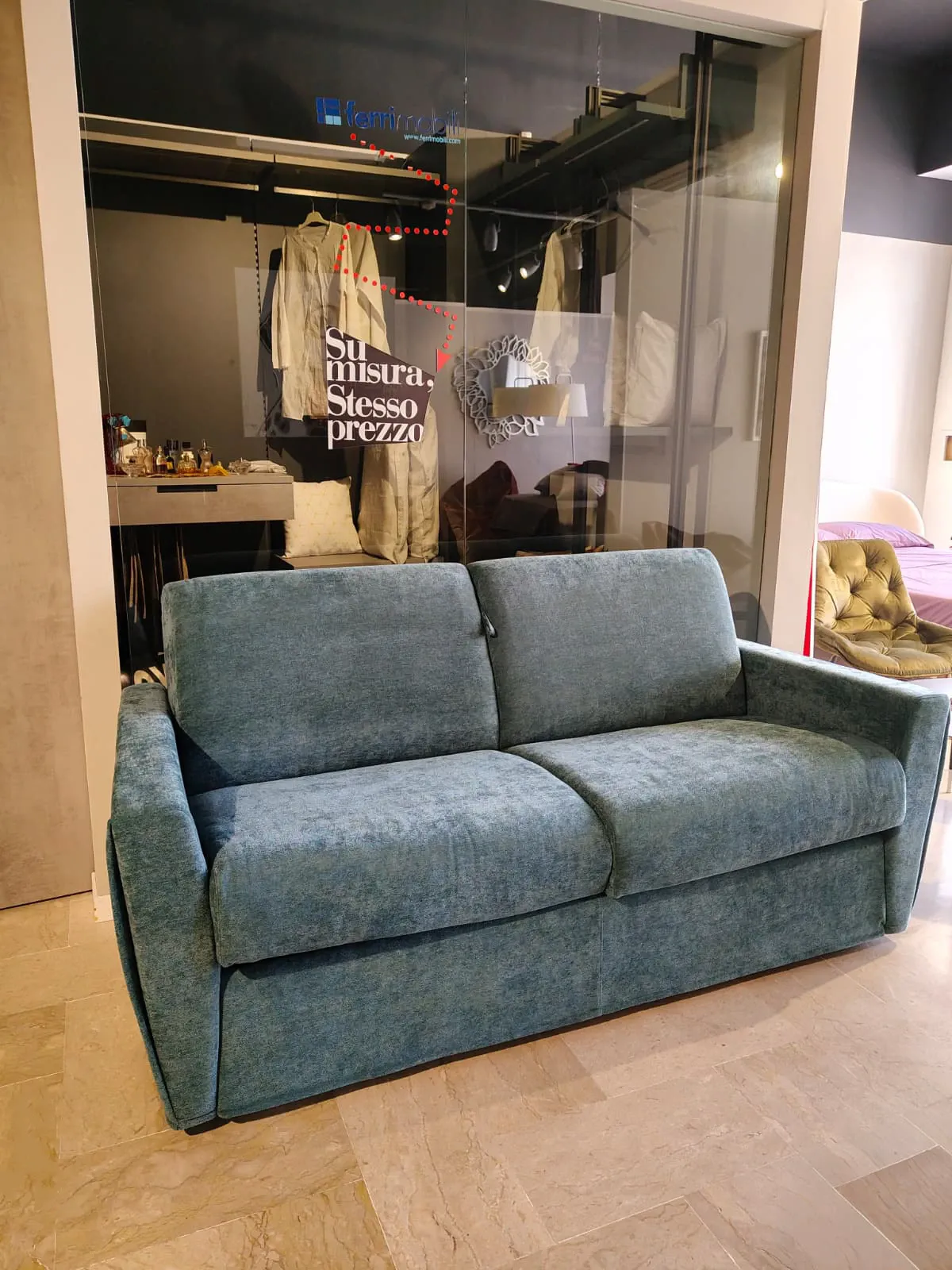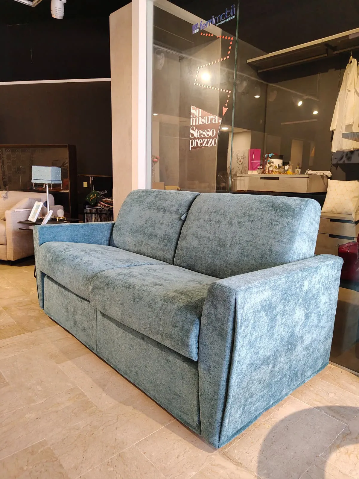 Caratterizzato da linee pulite e volumi compatti, questo modello si distingue per un'estetica fresca e versatile che si adatta con naturalezza sia a un living giovane che a una camera per gli ospiti.
