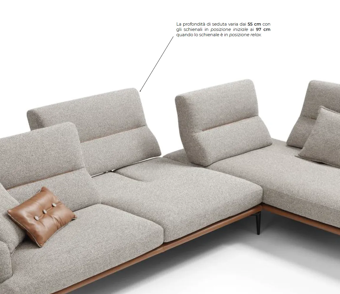 - Tipologia di divano relax, con 3 posti, seduta con seduta allungabile e stile design.