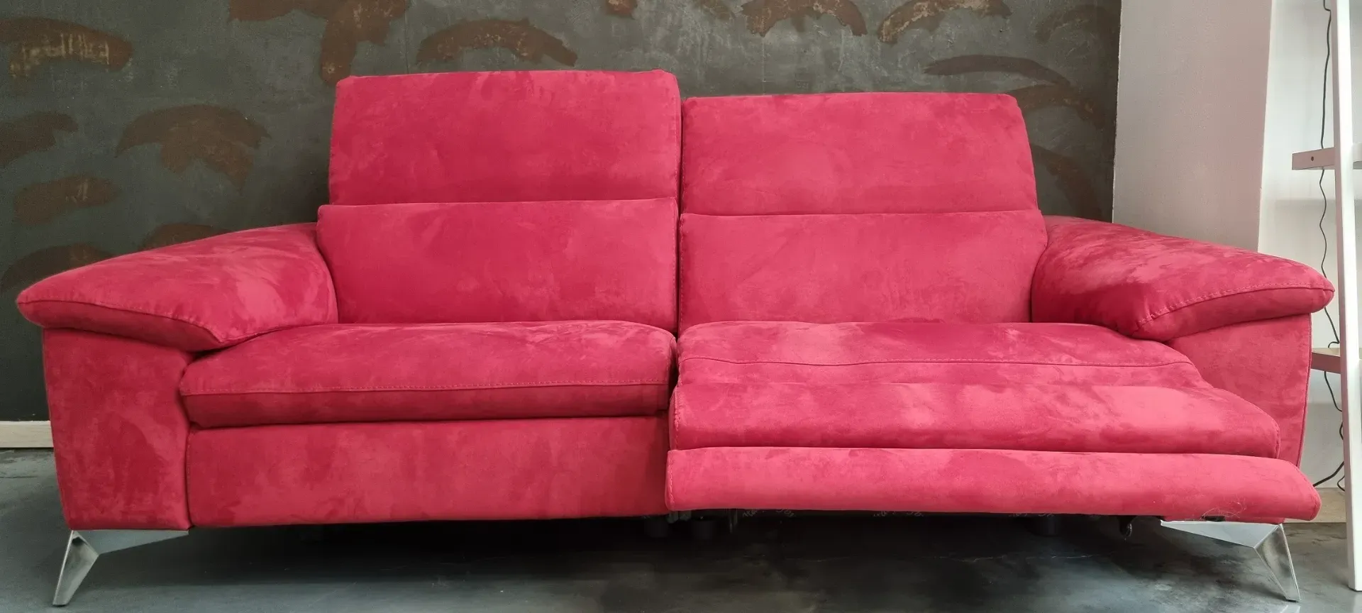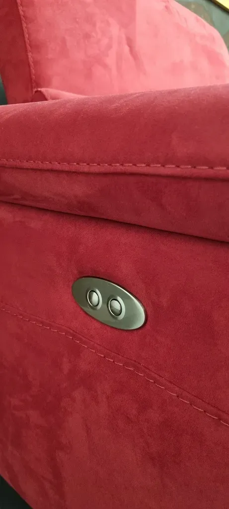 Martine versione relax dotato di meccanismo elettrico con comando posizionato sul lato esterno del divano.
