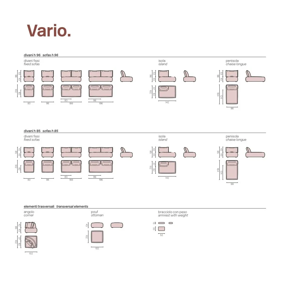 L'imbottito Vario qui presente, ovvero uno dei modelli che appartengono alla serie di imbottiti di lunghezza che va da 276 a 300 cm, è ideale per locali di diverse misure; i pezzi di arredo devono arricchire i locali interni valorizzando anche le doti pratiche degli stessi: per questo motivo è così rilevante selezionarli anche a seconda delle loro misure ed alla disposizione degli ambienti dove saranno collocati.