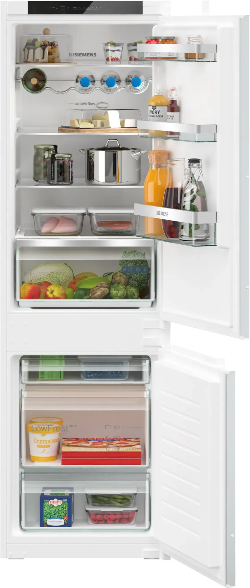 Frigorifero combinato da incasso con vano hyperFresh, per mantenere frutta e verdura fresche più a lungo e luce LED per una illuminazione ottimale del vano frigorifero. lowFrost: riduce la formazione di brina nel congelatore hyperFresh: il cassetto extra-large per frutta e verdura. autoAirflow: il raffreddamento uniforme mantiene il cibo fresco più a lungo.