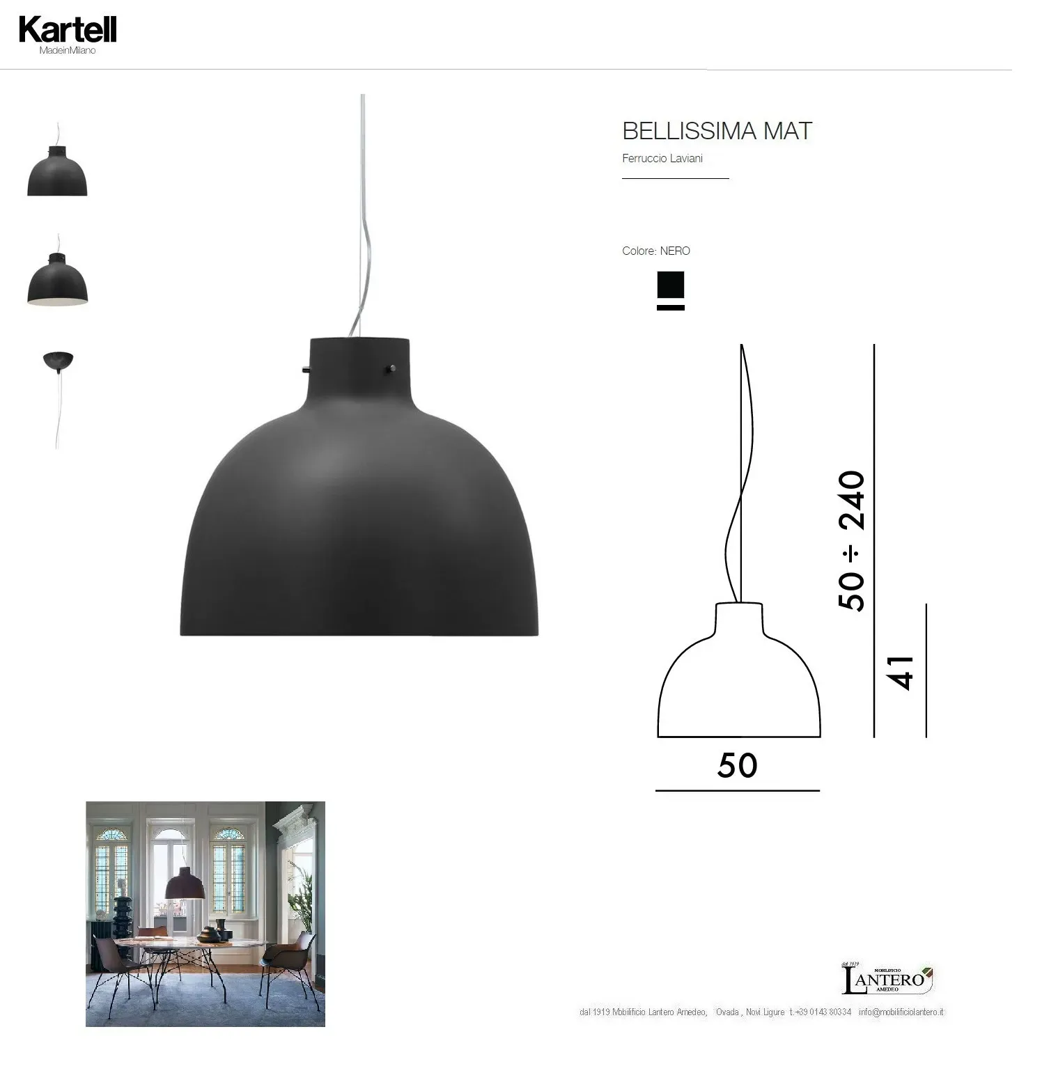lampada a sospensione Bellissima della prestigiosa collezione Kartell, firmata dal designer Ferruccio Laviani. Un pezzo che unisce semplicità ed eleganza, perfetto per ambienti moderni e minimalisti.