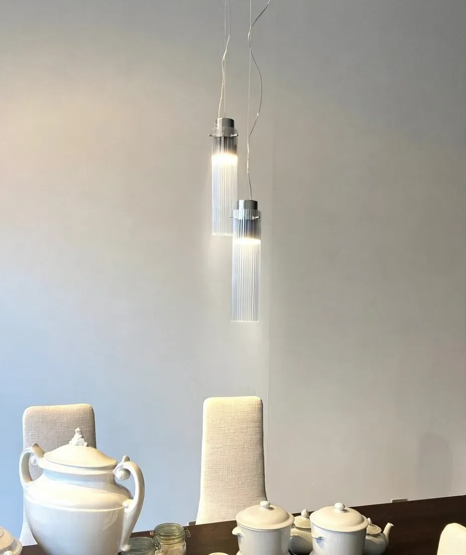 Eleganti e versatili, le lampade RIFLY nascono dalla Bathroom Collection Kartell, ma si adattano perfettamente a molteplici ambienti: sopra un tavolo da pranzo, un isola cucina o persino in ambienti classici come contrappunto moderno.