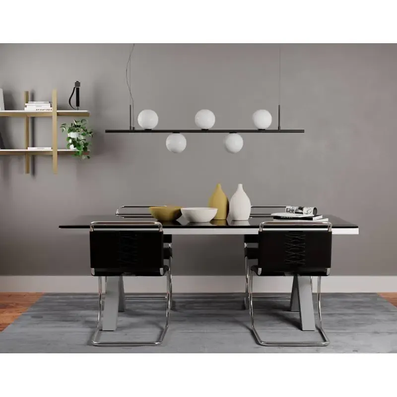 Redo Talis lampada a sospensione è composta da una struttura in metallo tubolare nella raffinata finitura bronzo spazzolato in cui sono alloggiati i corpi luminosi in vetro soffiato bianco opalino mentre il cavo elettrico in tessuto bianco è regolabile in altezza. Talis lampada a sospensione di Redo emette un flusso di luce morbido e diffuso perfetta per illuminare efficacemente e con un tocco decorativo il tavolo da pranzo, per illuminare l'open space, illuminare la zona relax, illuminare la zona conversazione o per illuminare altri ambienti della tua casa. Materiale: Vetro. Montatura in metallo. Finitura: Vetro opale e montatura in nero. Dimensioni: Lunghezza 1150 cm, Altezza 120 cm Attacco lampada: 5 lampadine con attacco e14 (non incluse) TASSE E TRASPORTO INCLUSI. Disponibilità momentanea: N. 02 pezzi. 100% PRODOTTI ORIGINALI. - SPEDIZIONI SICURE E VELOCI. - ASSISTENZA CLIENTI. MODALITA' DI PAGAMENTO: 1) BONIFICO BANCARIO 2) CONTRASSEGNO (PAGAMENTO IN CONTANTI ALLA CONSEGNA) 3) PAY PAL