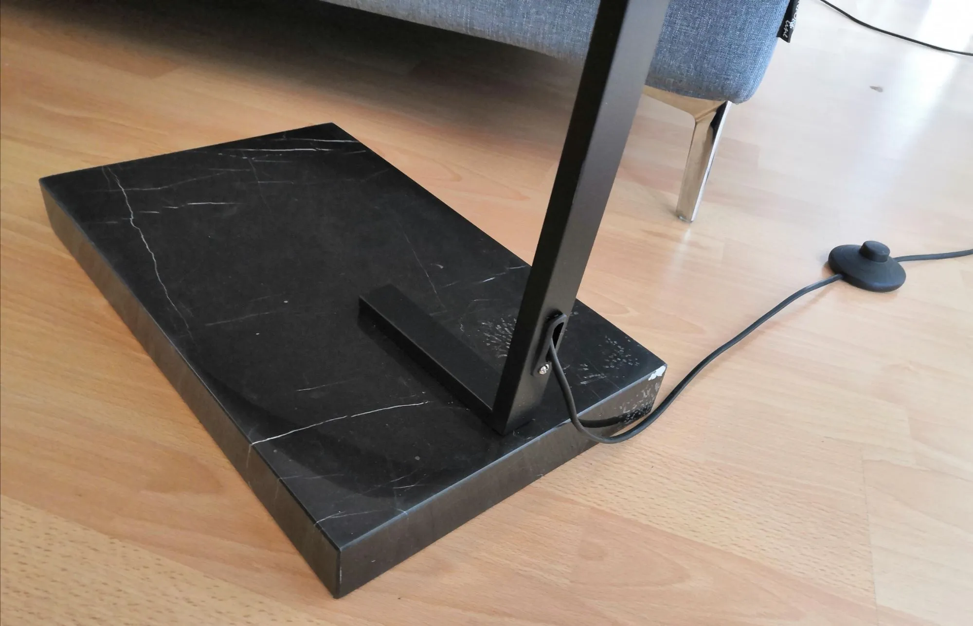 LAMPADA DA TERRA in metallo nero curvato, con basamento rettangolare ad effetto marmoreo. Paralume in tessuto nero. INGOMBRO: L cm 150 x h 210 Paralume diametro 50cm. IN ESPOSIZIONE PRESSO IL NOSTRO SHOWROOM RUFFATO ARREDAMENTI in provincia di PADOVA. Consegna in tutta Italia con un piccolo contributo di trasporto. Per maggiori informazioni, compilare il form sottostante e sarete contattati immediatamente.