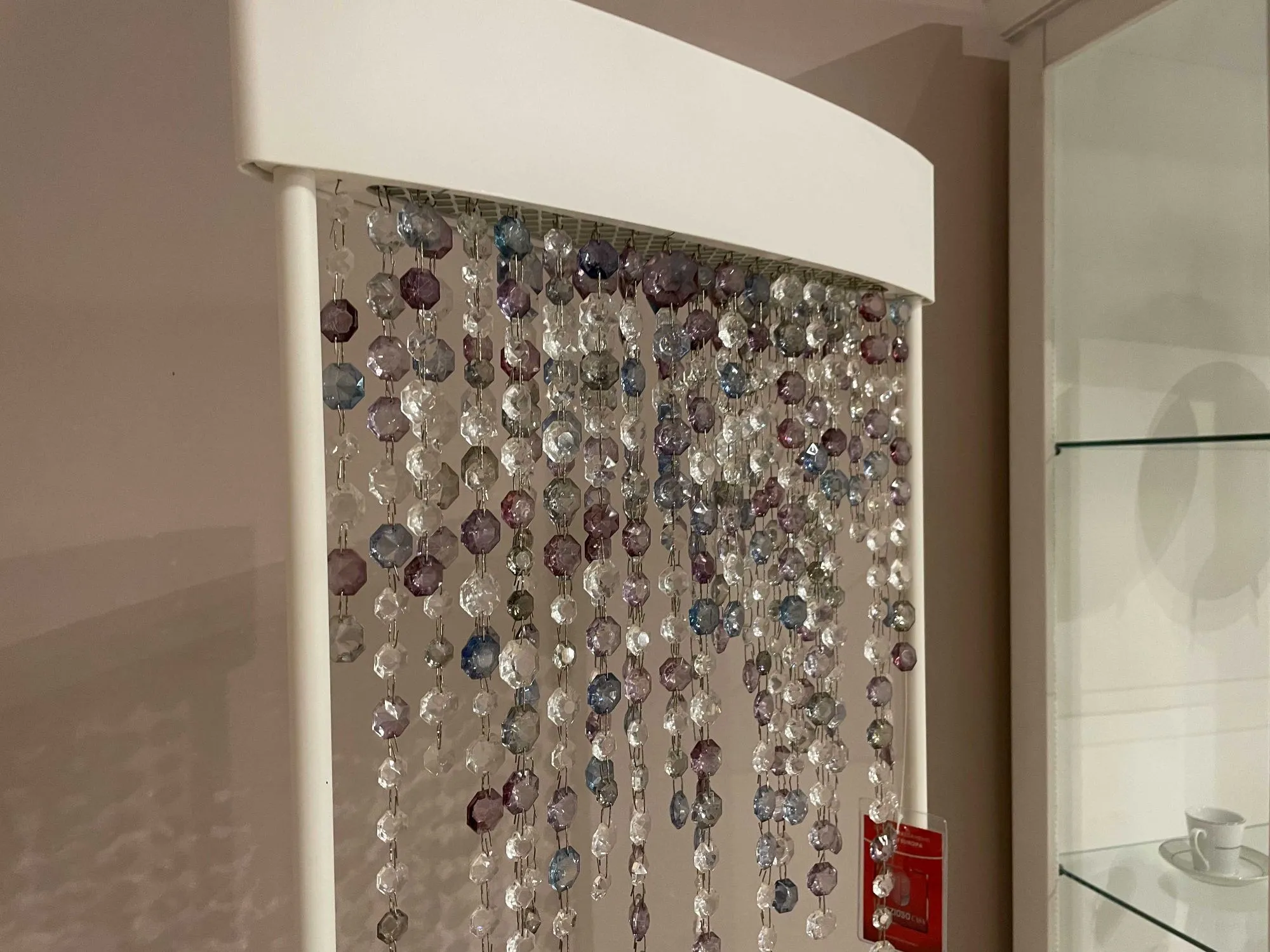 OLA' STL2_PIANTANA MOD. OLA' ุ50 H.180 STRUTTURA IN METALLO VERNICIATO COLORE BIANCO WH-M CON PENDAGLI IN VETRO VERNICIATO LUICI 4XG9X60W ALOGENA