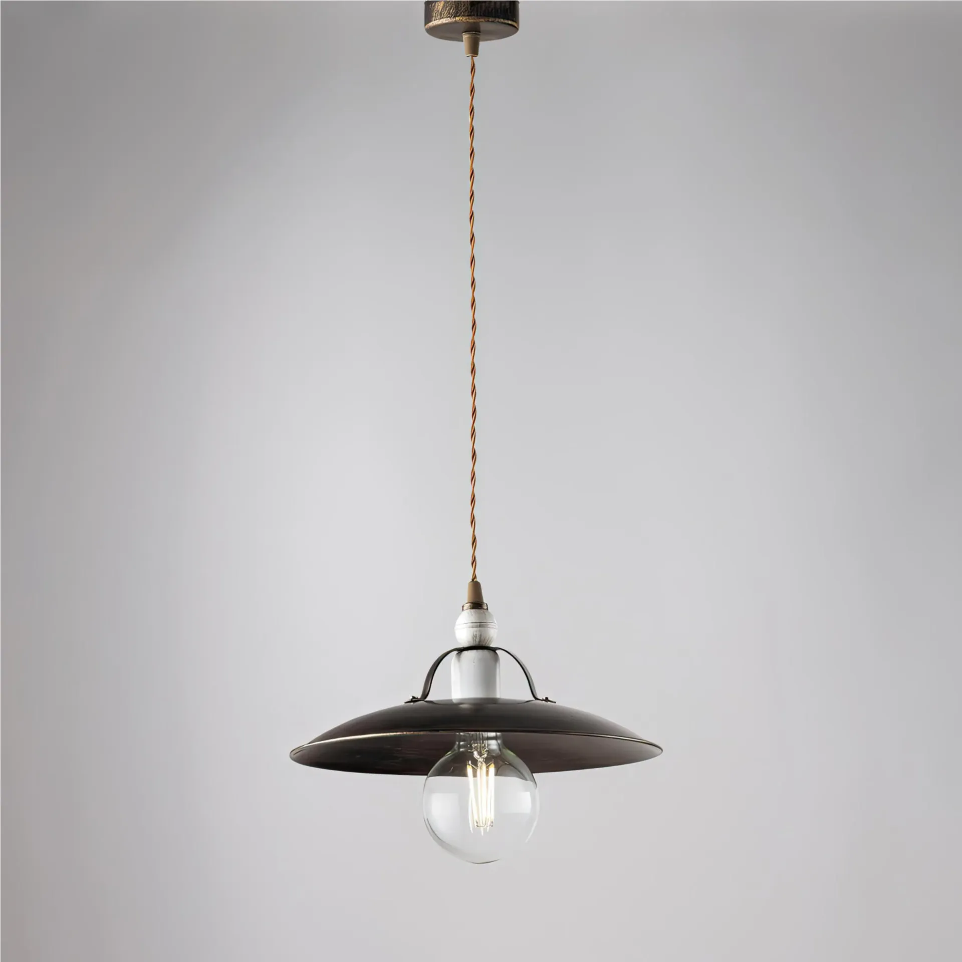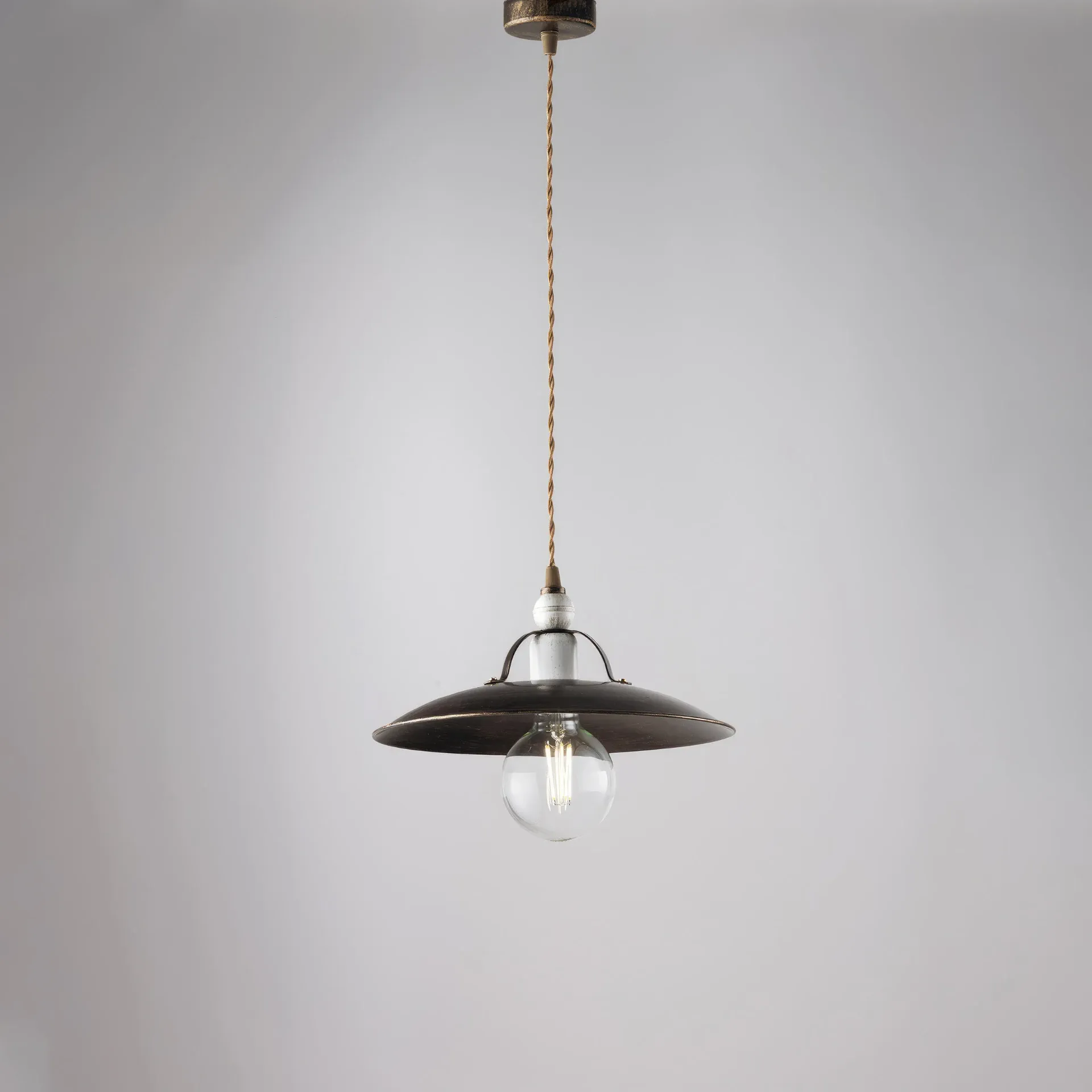 Cantina di Bonetti Illuminazione è una sospensione dal nome evocativo e dal design elegante. Infatti è ideale per qualsiasi ambiente dallo stile rustico, come cantine, locali rustici, pub e tanto altro. Cavo intrecciato in tessuto, regolabile in altezza. Made in Italy.
