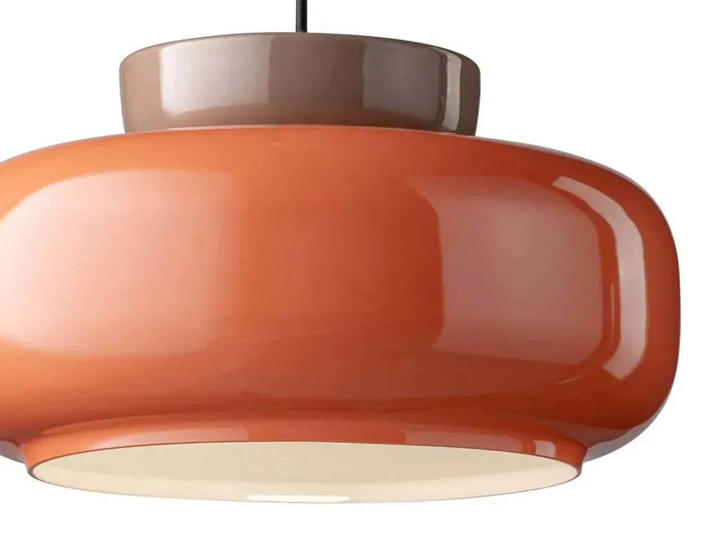C2741 Maracanà di Ferroluce è una sospensione costituita da due parti: quella superiore, in ceramica e dalla forma a ciotola, e quella inferiore, in vetro verniciato e naturale che richiama, con il suo aspetto leggermente rialzato, la costruzione degli stadi e delle arene. Da qui il nome della lampada, riferito allo stadio brasiliano per eccellenza: Maracanà. Ferroluce è sinonimo di Made in Italy per eccellenza. Maestria artigianale e cura dei dettagli. Cavo regolabile in altezza.