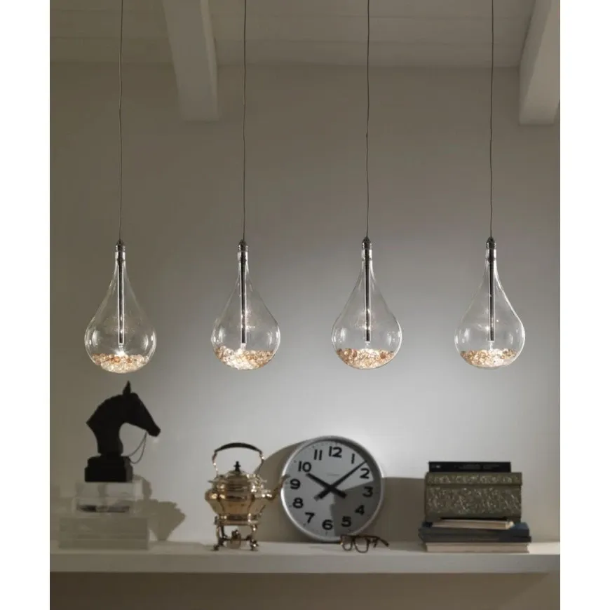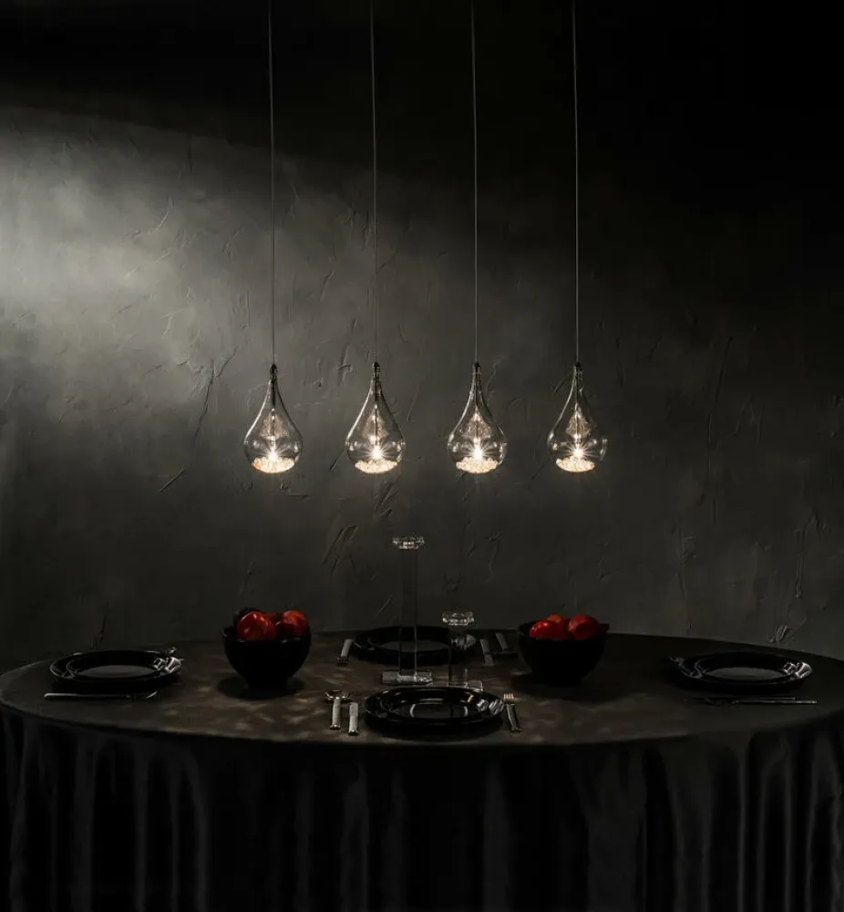 Il design, ispirato alla forma delicata delle gocce, conferisce leggerezza e movimento, rendendolo perfetto per ambienti come la zona living, la sala da pranzo o una cucina moderna.