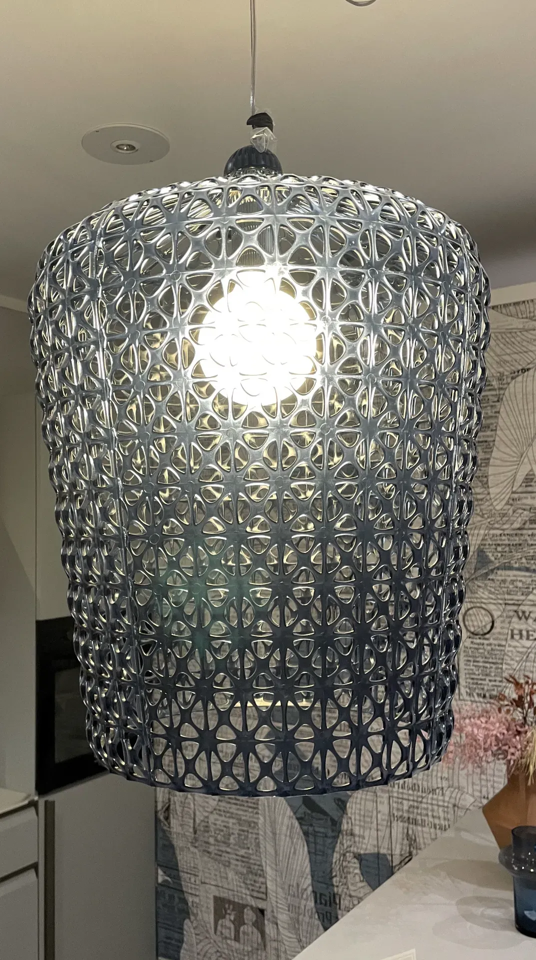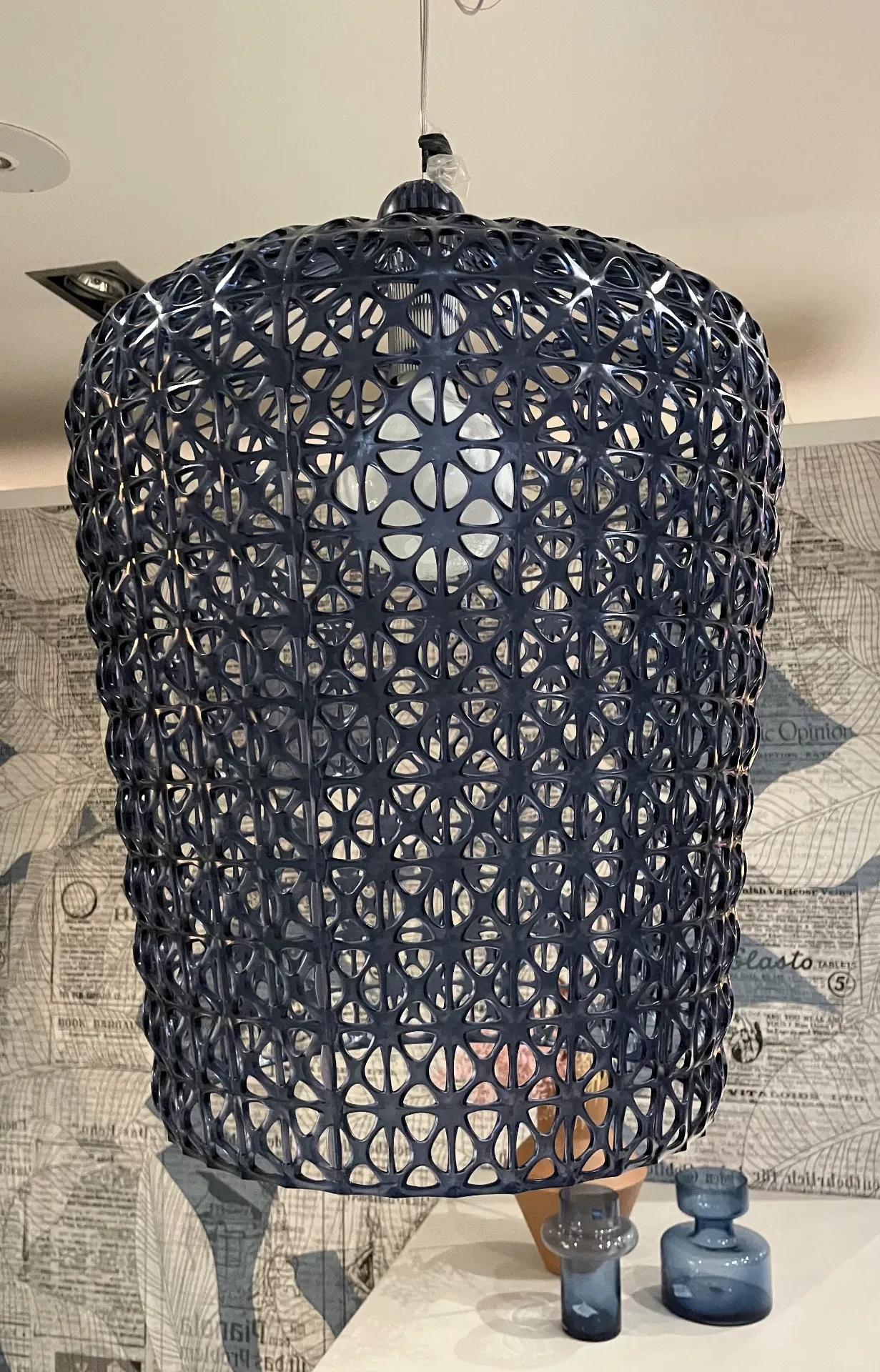 La lampada sospesa Kabuki, creata dal rinomato designer Ferruccio Laviani per Kartell, è un capolavoro di design contemporaneo che unisce eleganza e innovazione. Realizzata in tecnopolimero termoplastico, questa lampada si distingue per la sua struttura a trama intricata, ottenuta attraverso un processo di iniezione che ricrea l'effetto del pizzo. La superficie traforata non solo aggiunge un tocco estetico unico, ma permette anche alla luce di diffondersi in modo suggestivo nell'ambiente.