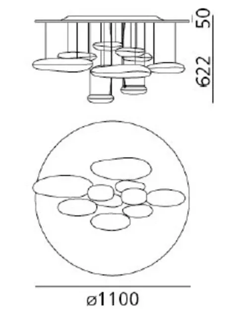 Dimensioni: Diametro 110cm, altezza 60cm, possibilità di regolare l'altezza dal soffitto.