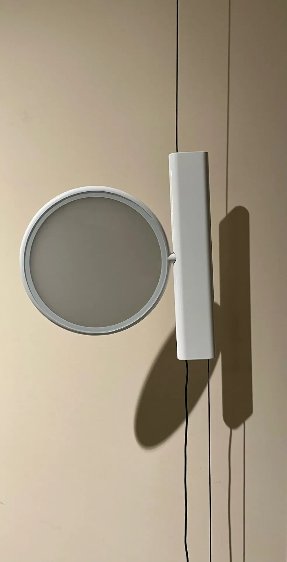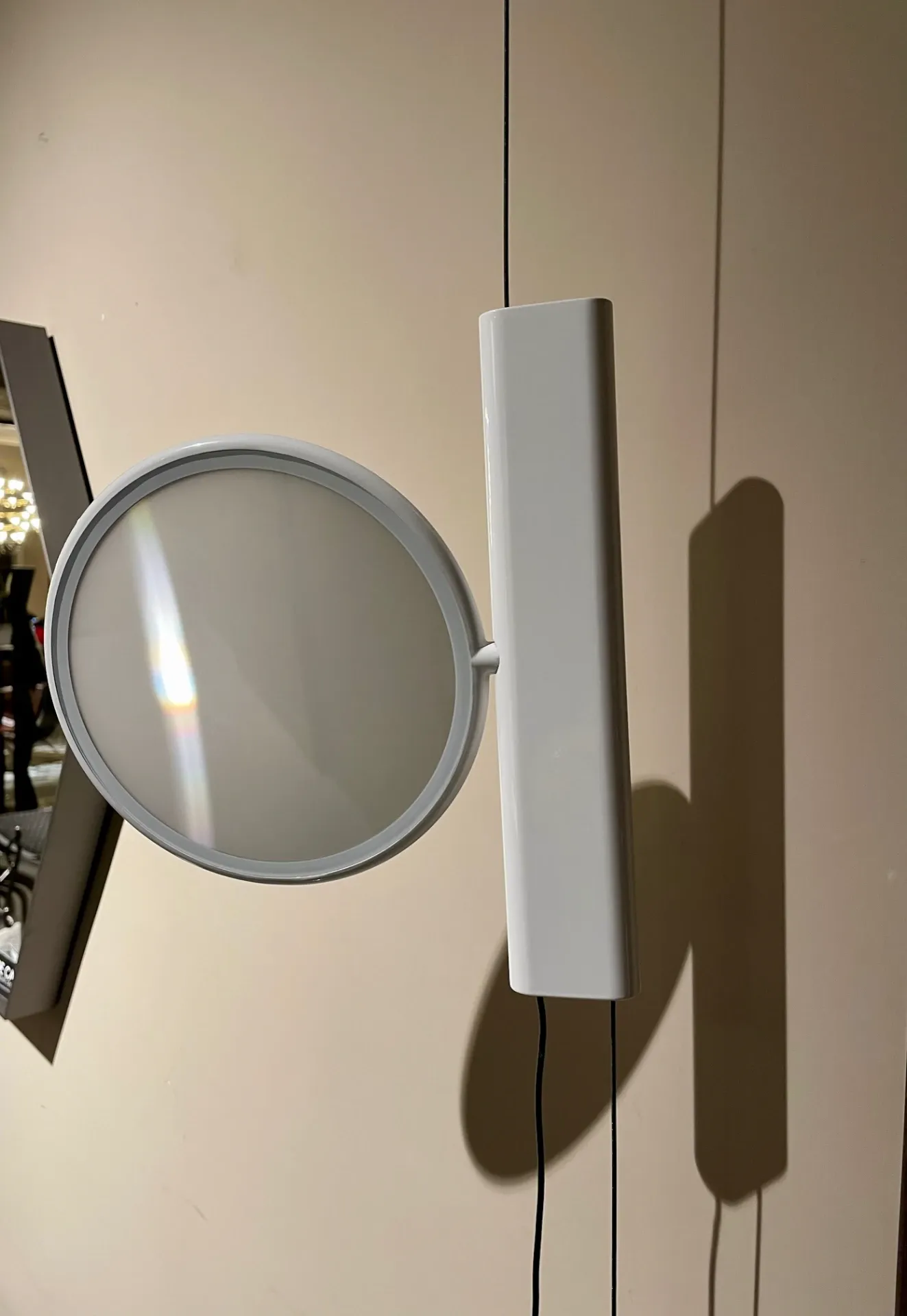 OK Designed by Konstantin Grcic, 2014. Apparecchio di illuminazione a luce diretta. Testa in alluminio pressofuso verniciato lucido. Corpo in PA66+30%FV stampato ad iniezione con cover in alluminio estruso verniciato lucido. Testa orientabile. Colore disponibile bianco, cromo.