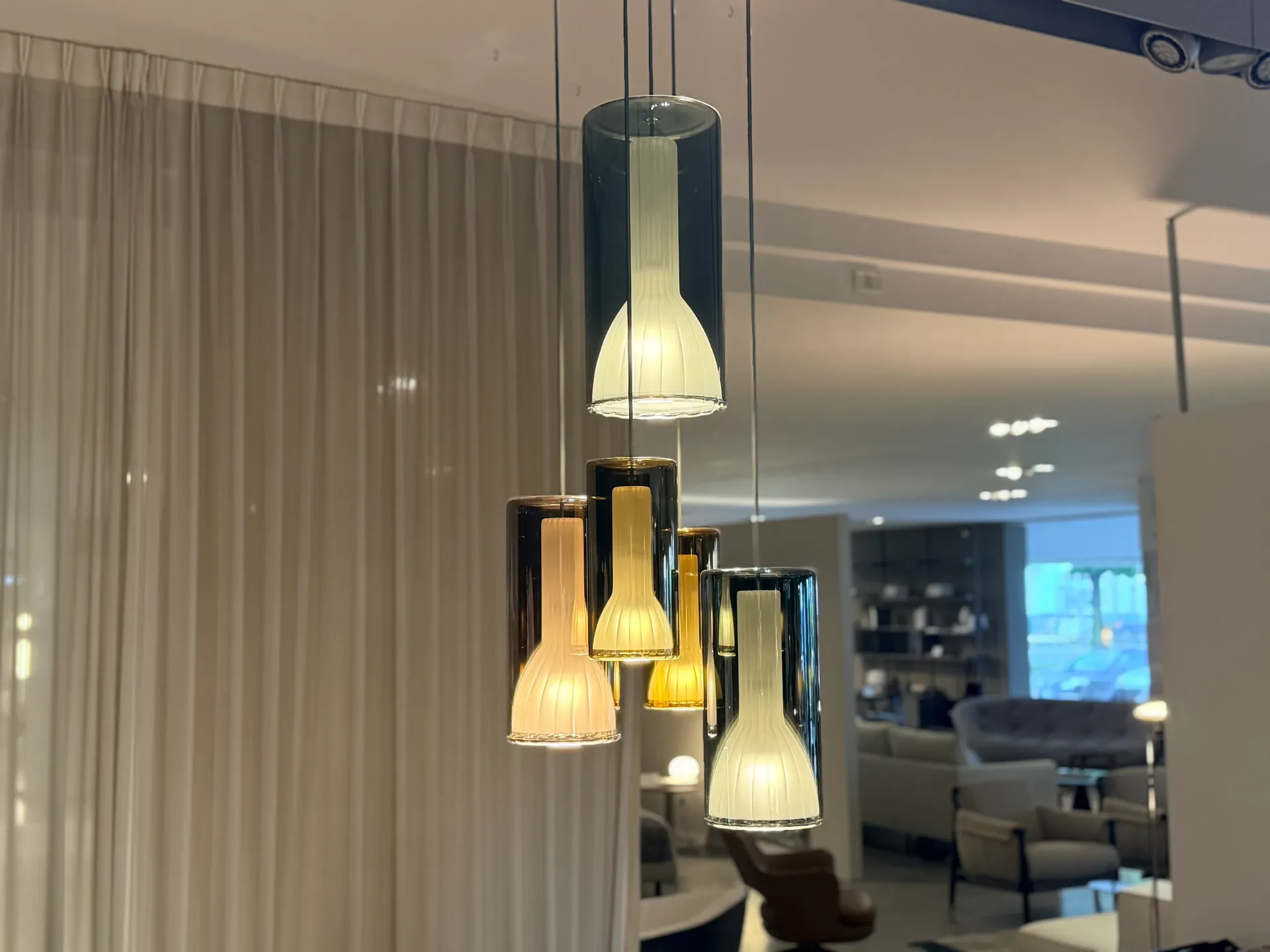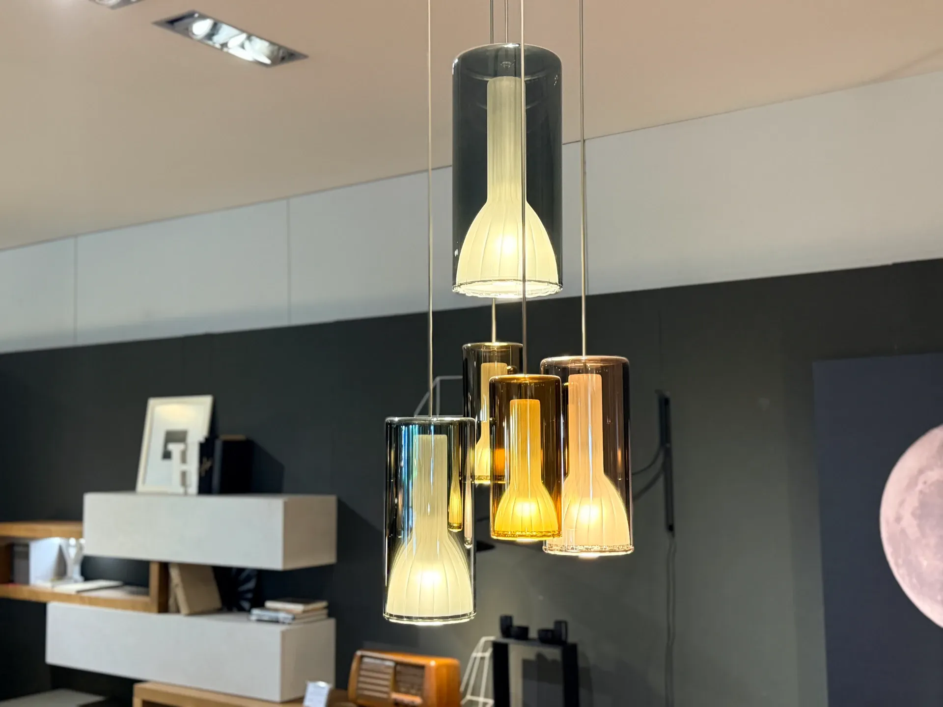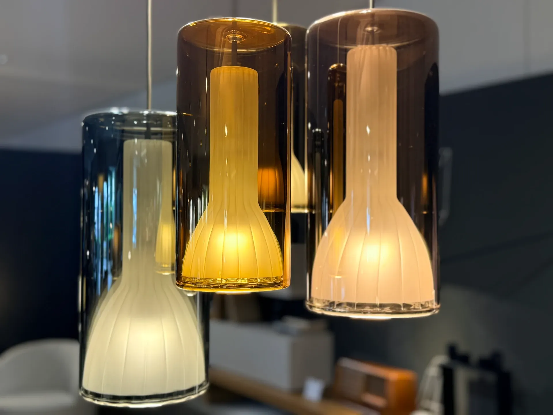 Il vetro specchiato gioca un ruolo fondamentale: di giorno riflette, mentre di sera risplende. La luce si diffonde in modo morbido, enfatizzando le tonalità del vetro colorato e conferendo profondità agli spazi. Le lampade Lit di Penta sono più di semplici corpi illuminanti: sono vere sculture di luce che arricchiscono ogni ambiente con carattere.