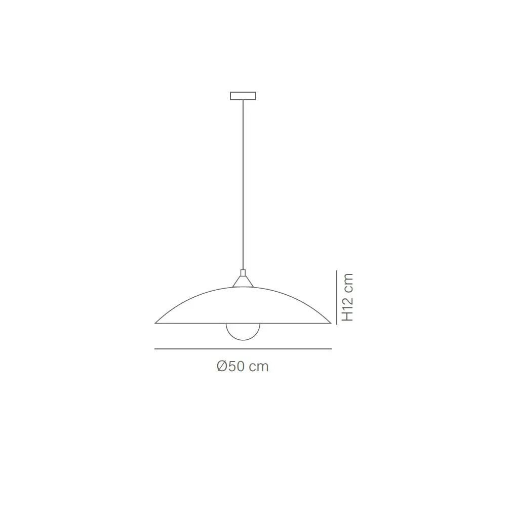 Dimensioni: Diametro 50 cm, Altezza corpo 12 cm, Altezza totale max 130 cm.