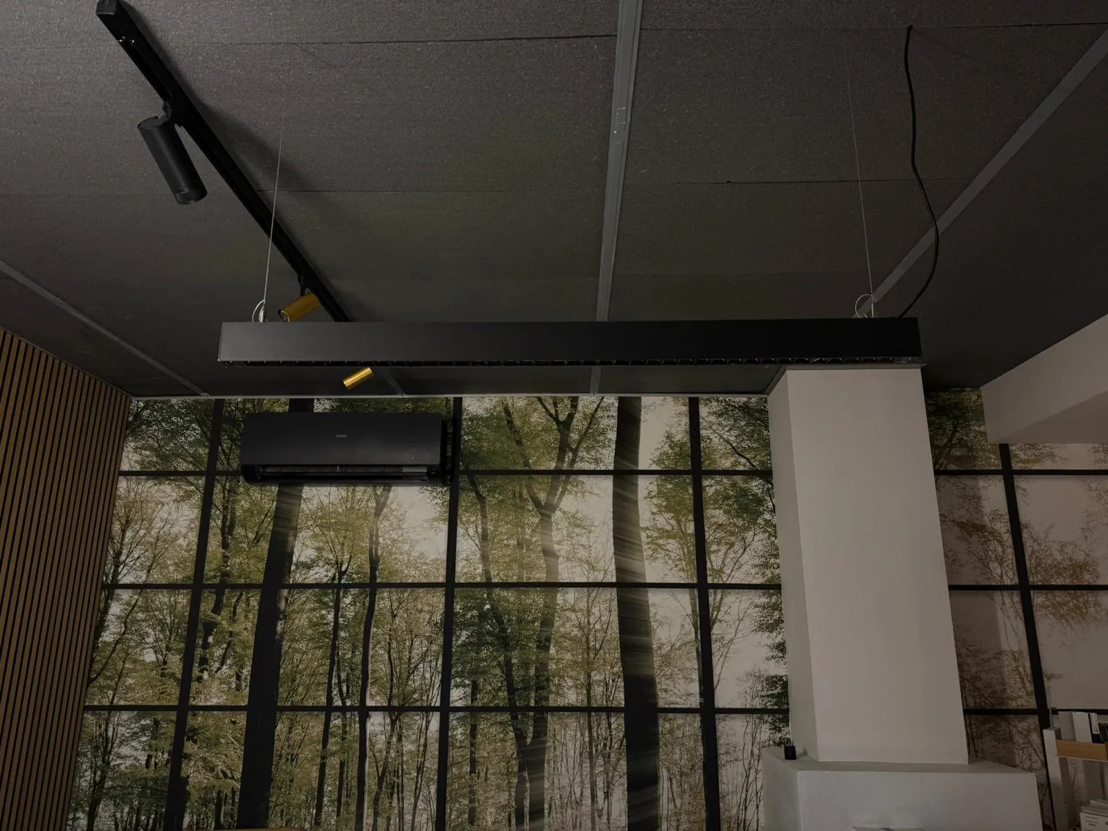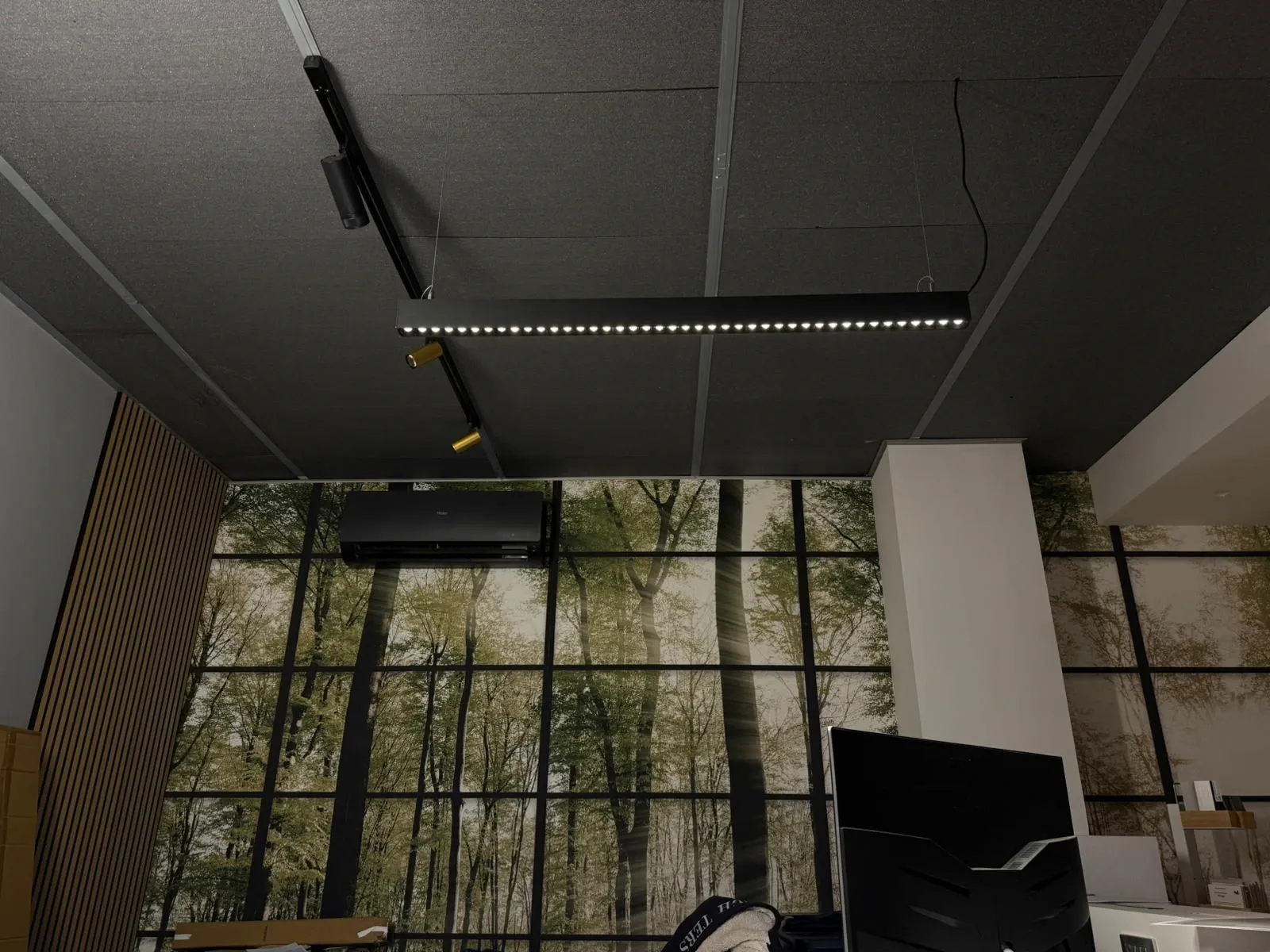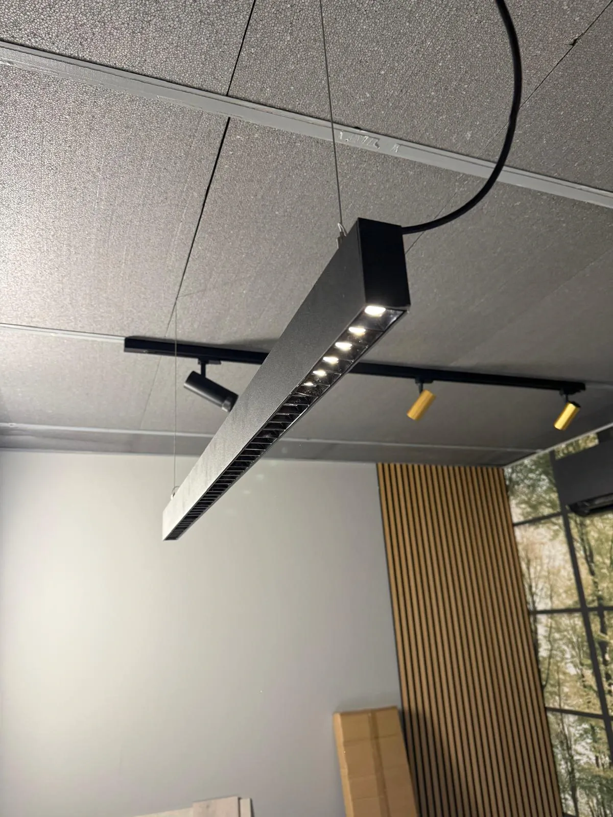 Elegante lampadario lineare a sospensione, dal design minimale e raffinato. Realizzato in alluminio estruso con finitura nera opaca a polveri, integra LED a 3000K per una luce calda e accogliente. Dotato di pratico interruttore a bordo, permette di controllare facilmente l accensione e lo spegnimento dell emissione luminosa indiretta, creando atmosfere sofisticate in ogni ambiente.
