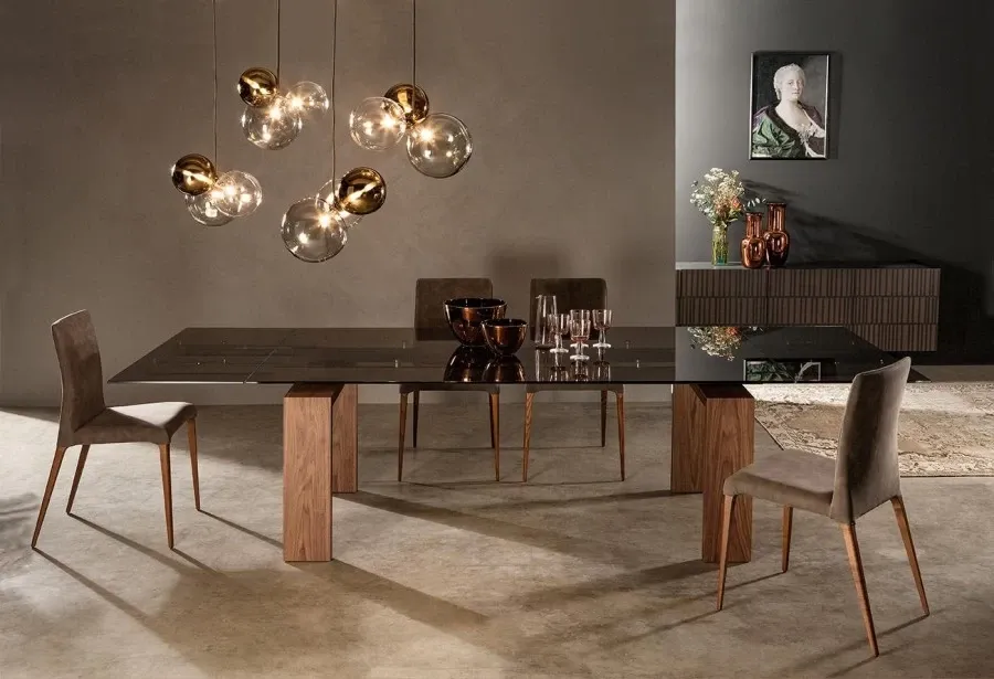 Parmenide affermava che l'Essere è una sfera perfetta, uguale a se stessa nello spazio, chiusa e finita. Così Atomo vuole rappresentare questa idea di unità vista a 360°, con un design composto da tre sfere di dimensioni diverse perfettamente adatto per qualsiasi tavolo e dining room.