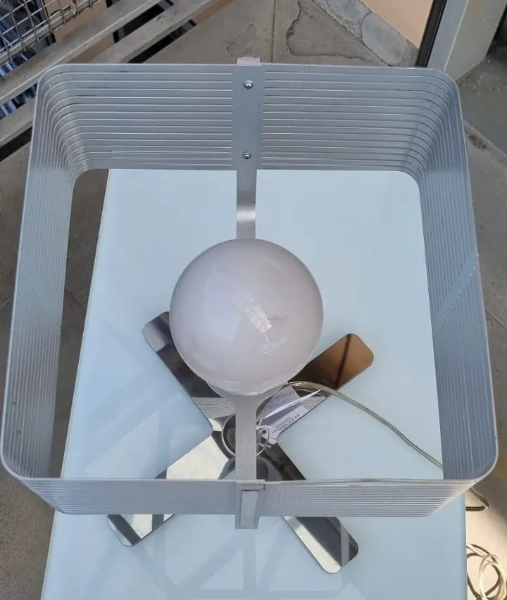 Lampada da tavolo AndCosta modello IX Table con base in acciaio.