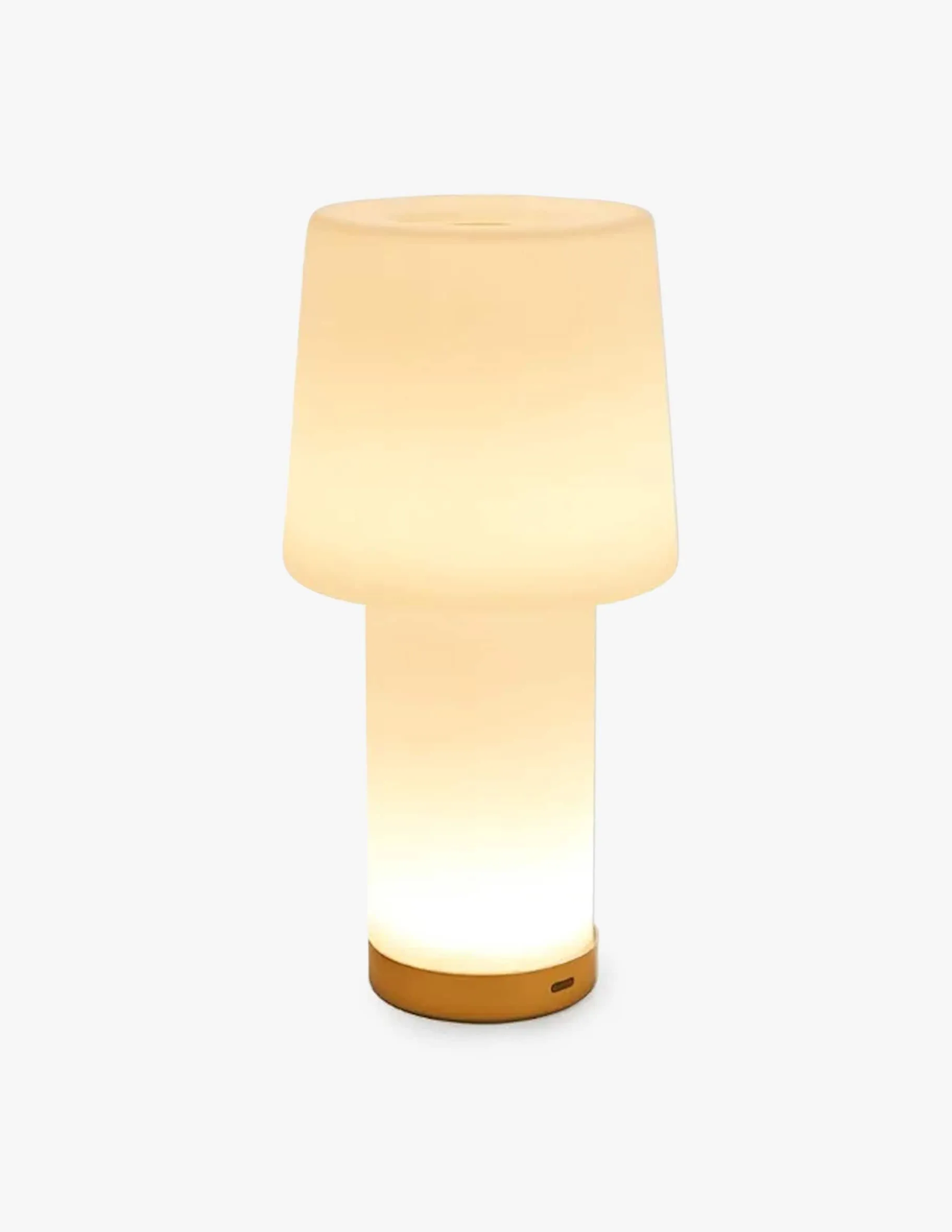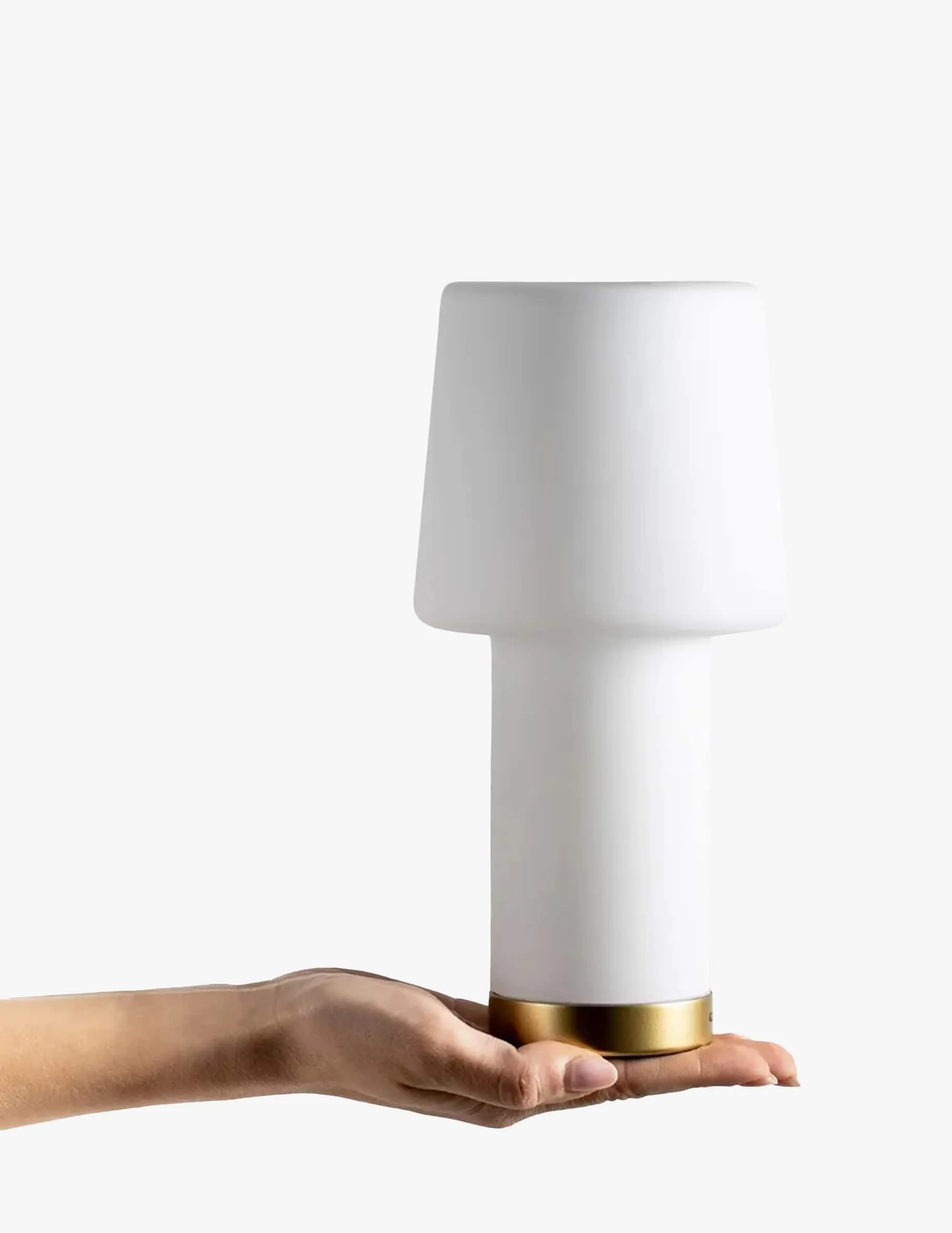 - Finitura: Oro (base e anello decorativo in metallo con logo FontanaArte serigrafato) - Materiale: Vetro soffiato e metallo - LED integrato e dimmerabile - Batteria ricaricabile (durata 8 ore) - Cavo USB incluso – alimentatore su spina non incluso - Uso: indoor/outdoor coperto