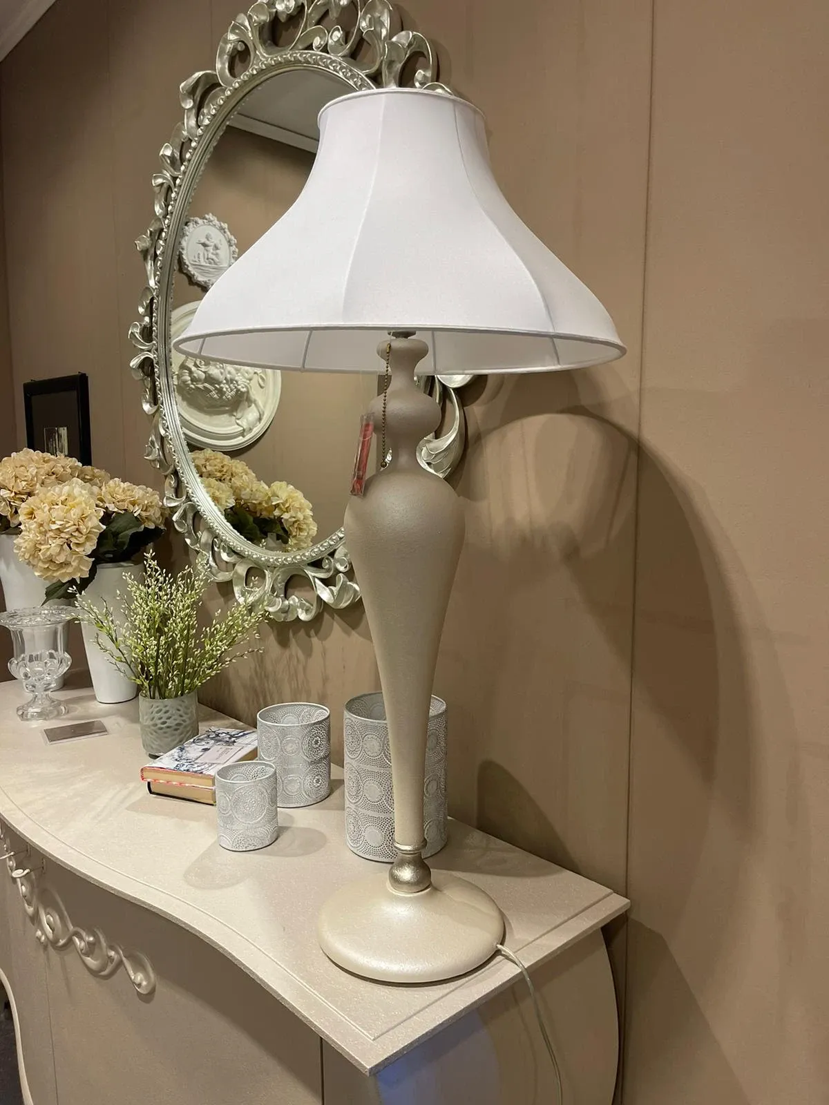 520-C-B_LAMPADA OPERA’ Ø CM 55 H. CM 100 DA TAVOLO IN LEGNO CAT.B B57 CAMEO STRUTT. CON PARTICOLARE IN C46 C/PARALUME PONGE COL.1 PORTATA MAX 60 W