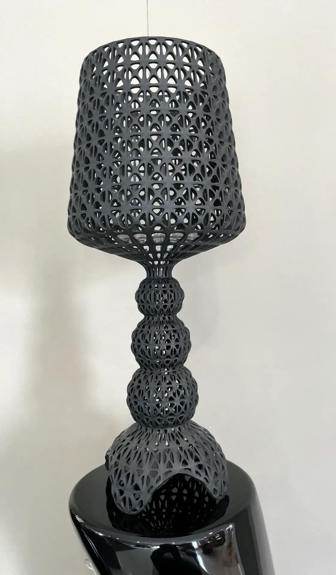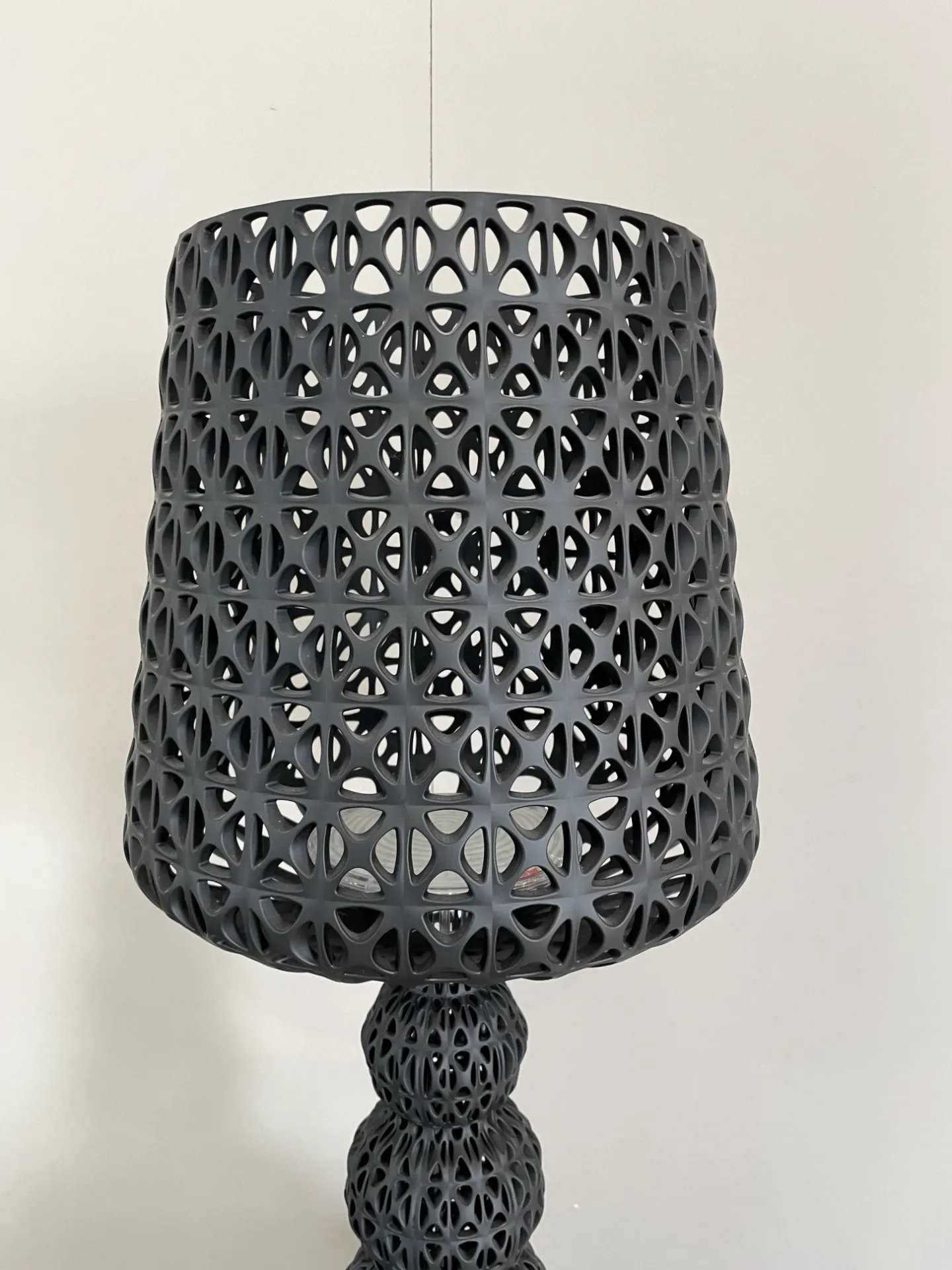 La lampada Mini Kabuki di Kartell, disegnata da Ferruccio Laviani, è un capolavoro di design contemporaneo che unisce eleganza e innovazione. Realizzata con una tecnica di iniezione avanzata, questa lampada presenta una struttura a trama intricata che ricorda il pizzo, creando un effetto visivo affascinante e unico. La sua superficie traforata permette alla luce di diffondersi in modo delicato e suggestivo, trasformando qualsiasi ambiente in uno spazio accogliente e raffinato.
