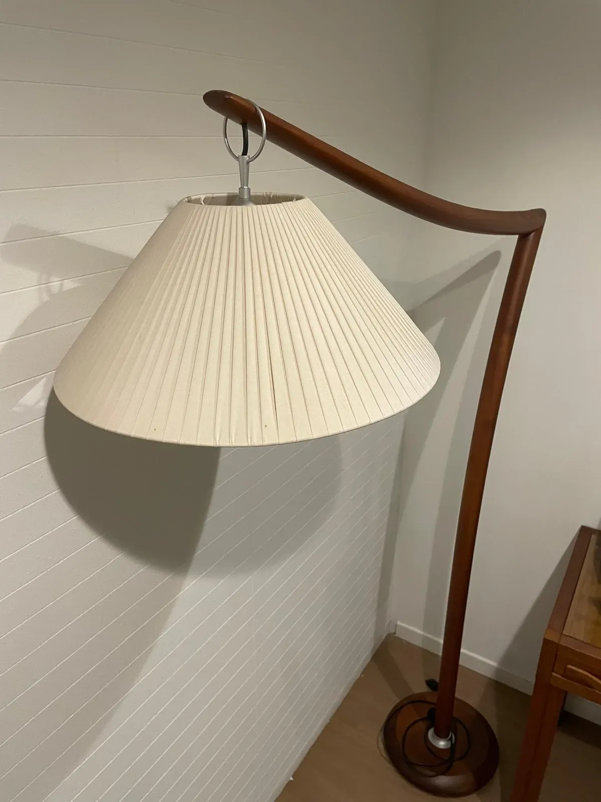 LAMPADA DA TERRA IN LEGNO CON PARALUME IN TESSUTO BIANCO