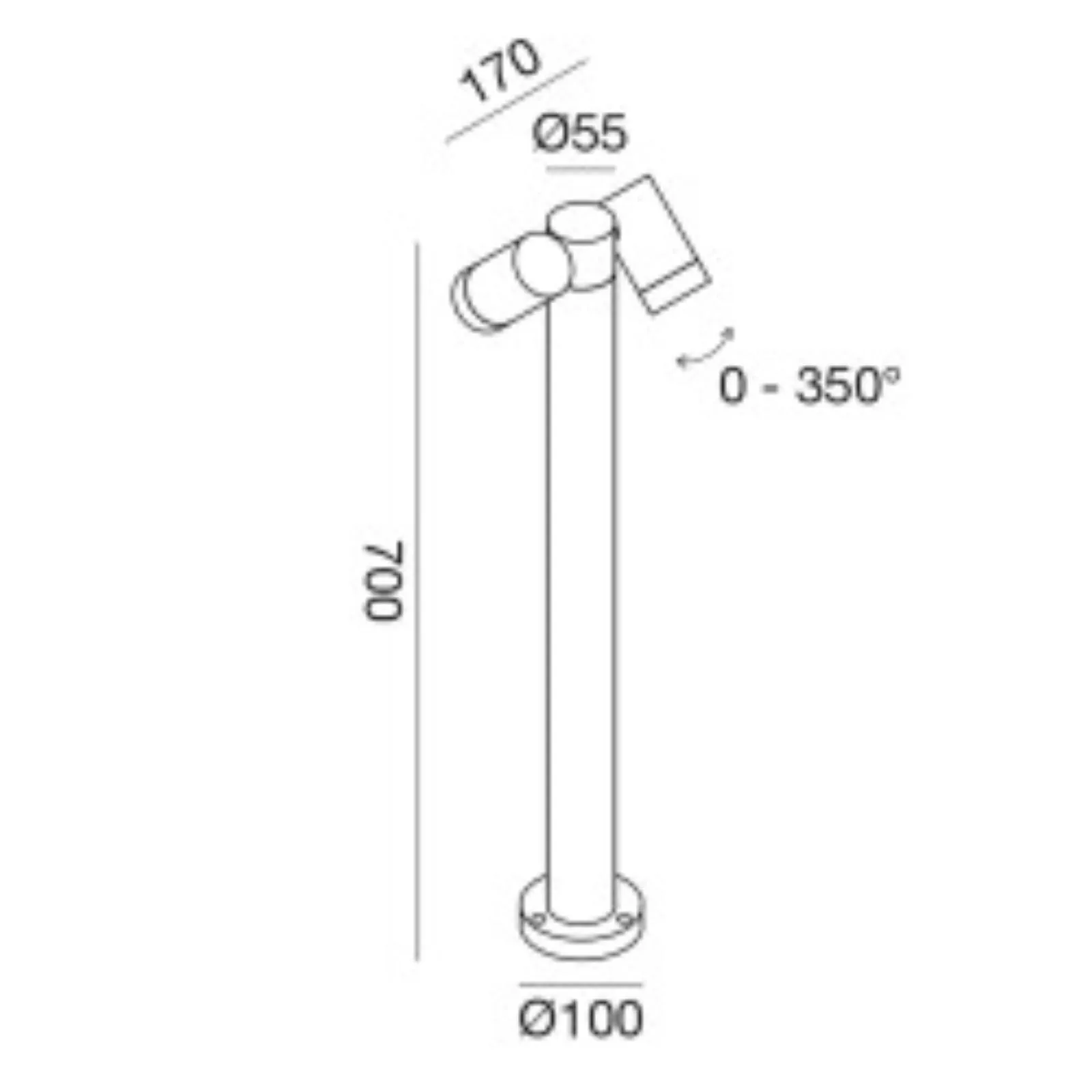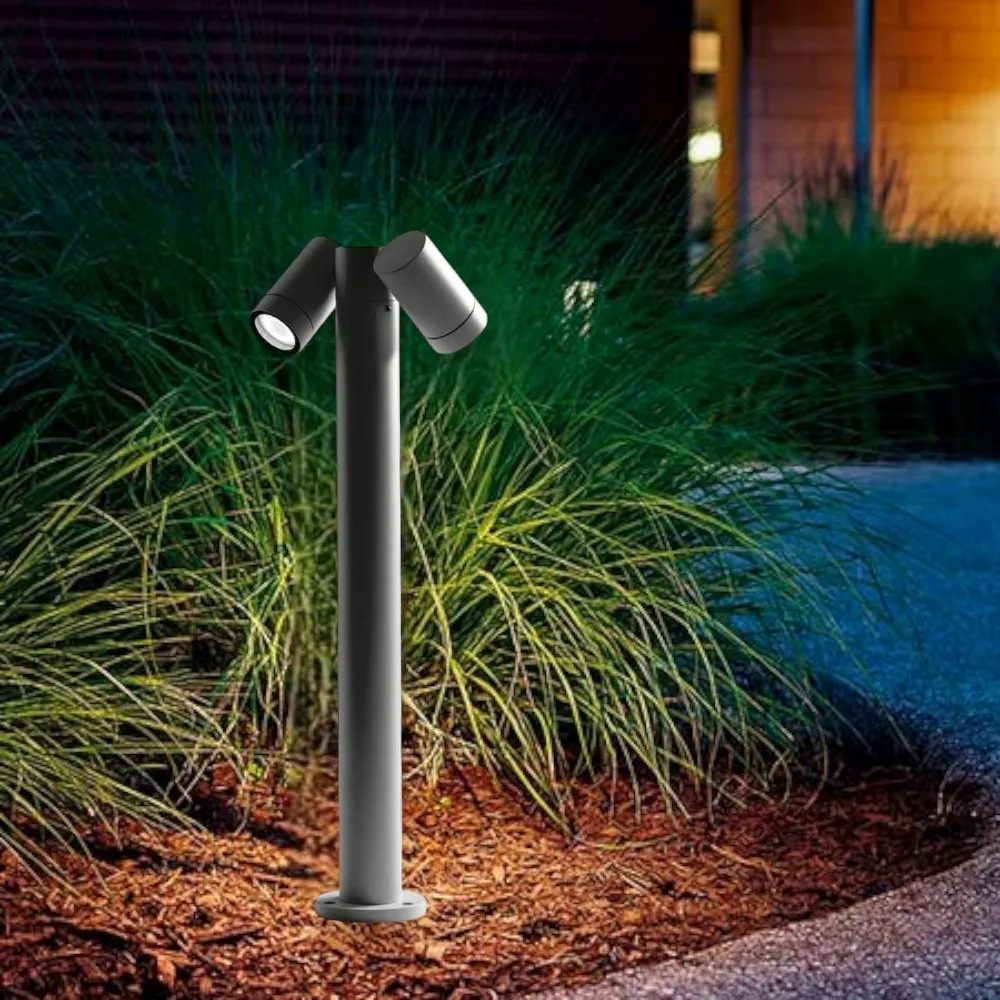 GES1123 di GeaLuce è un palo per esterno elegante e dalla funzionalità ottimale. Infatti grazie alle due luci orientabili a 350 gradi, si può indirizzare il flusso luminoso in base alle esigenze. Grado di protezione IP65.