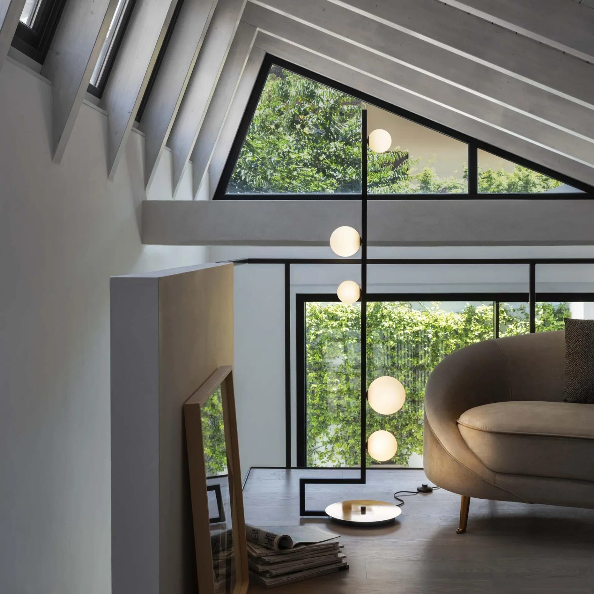Poiché gli ambienti domestici devono essere organizzati con una precisa logica, cosicché i mobili, tra cui anche l'illuminazione, ottimizzino lo spazio senza essere ingombranti, il marchio ha ideato una grande varietà di modelli di lampade, piantane e abat-jour, sospese oppure paretali; il modello qui presente è uno splendido esempio di da terra firmata dal marchio.