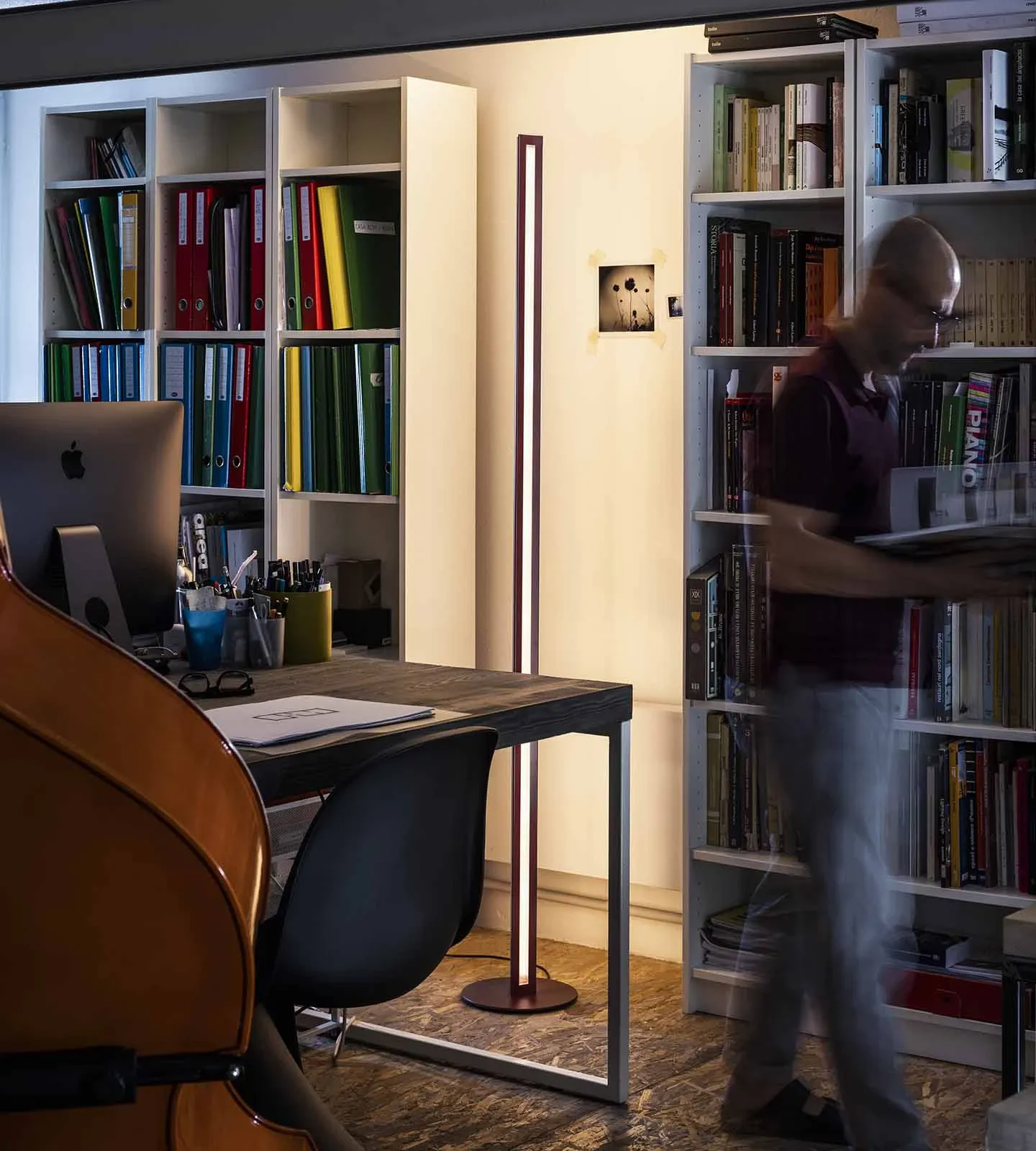 Poiché gli ambienti domestici devono essere organizzati con una peculiare logica, in modo che i pezzi di arredo, tra cui anche l'illuminazione, ottimizzino lo spazio senza risultare ingombranti, il brand ha ideato una vasta scelta di modelli di lampade, da terra e abat-jour, a sospensione oppure a parete; il modello qui presente è un magnifico esempio di da terra firmata dal brand.