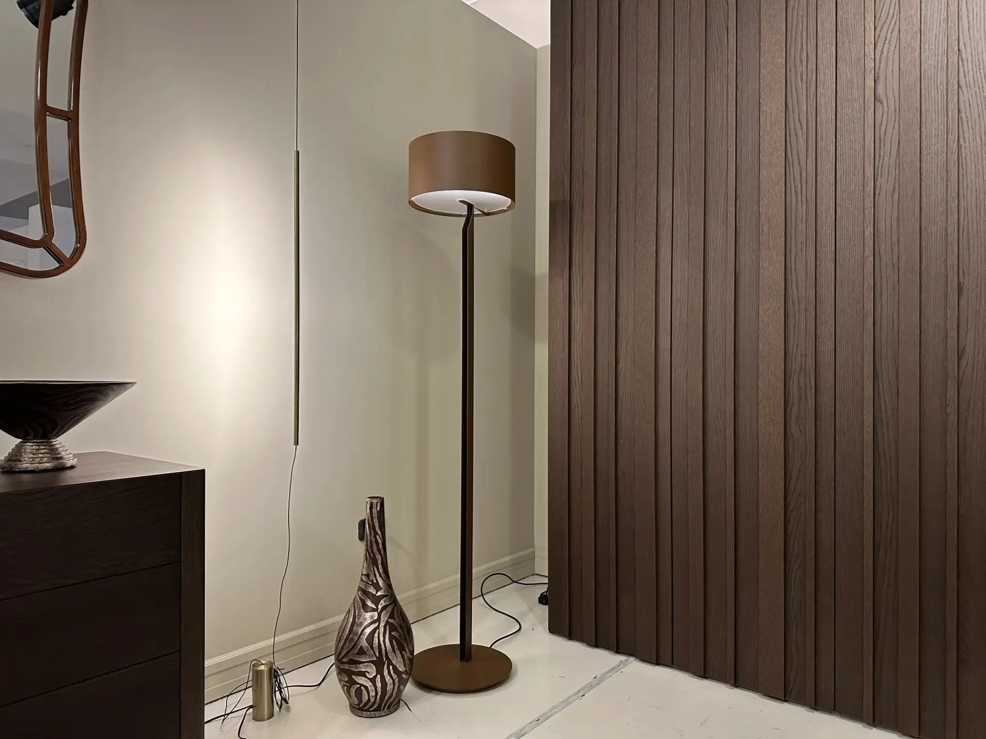 Visto che gli ambienti domestici devono essere organizzati con una certa logica, in modo che i pezzi di arredo, tra cui anche l'illuminazione, organizzino al meglio lo spazio senza essere di intralcio, il brand ha ideato un'infinità di modelli di lampade, piantane e abat-jour, a sospensione o paretali; il modello qui presente è uno splendido esempio di da terra firmata dal brand.