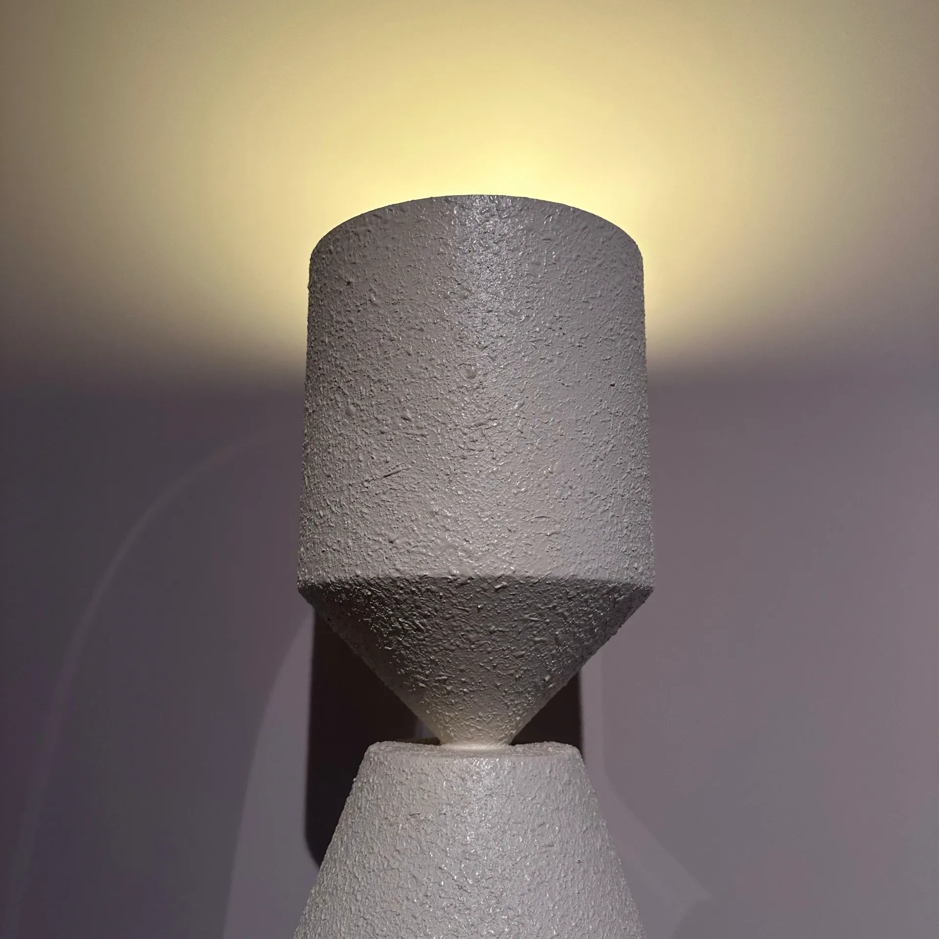Realizzata in metallo chiaro, la lampada presenta una finitura in Canapa RAL 1013 che le conferisce un aspetto raffinato e contemporaneo. La sua struttura si distingue per una serie di elementi geometrici sovrapposti che catturano l'attenzione e aggiungono dinamismo all'ambiente circostante.