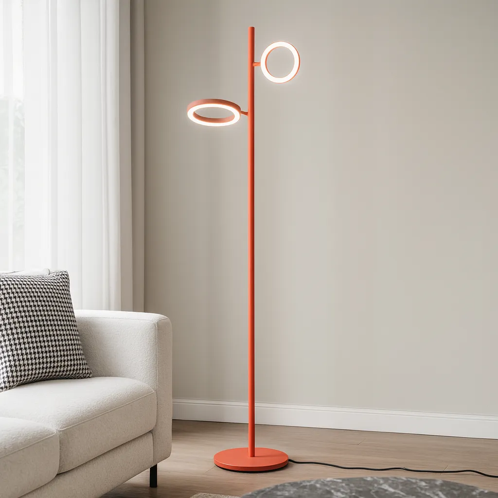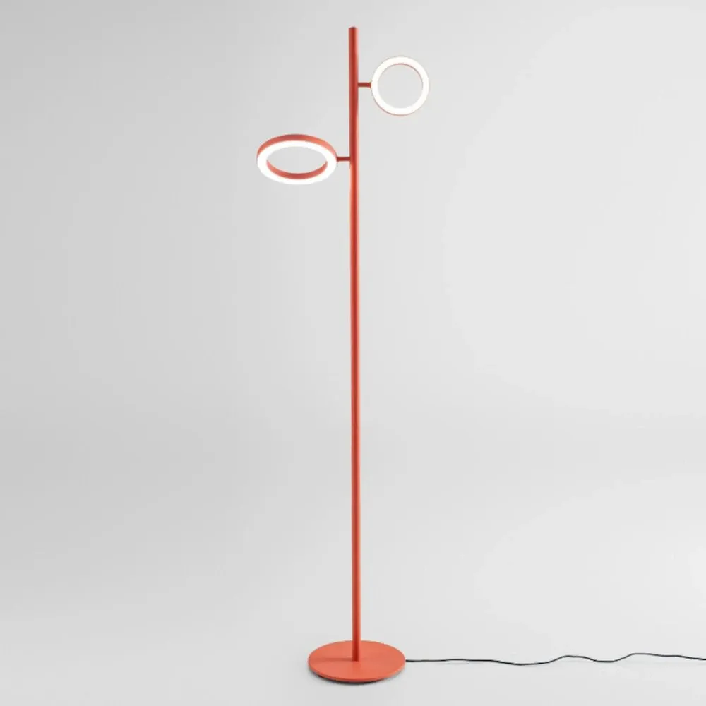 GPI di Gea Luce, è una lampada da terra versatile ed estremamente funzionale grazie ai suoi due diffusori orientabili a 350 gradi, che permettono di indirizzare la luce in base alle esigenze. L'accensione e la dimmerazione, per variare l'intensità luminosa, sono gestite tramite un pratico pulsante sullo stelo. Inoltre i due diffusori si possono accendere anche separatamente.