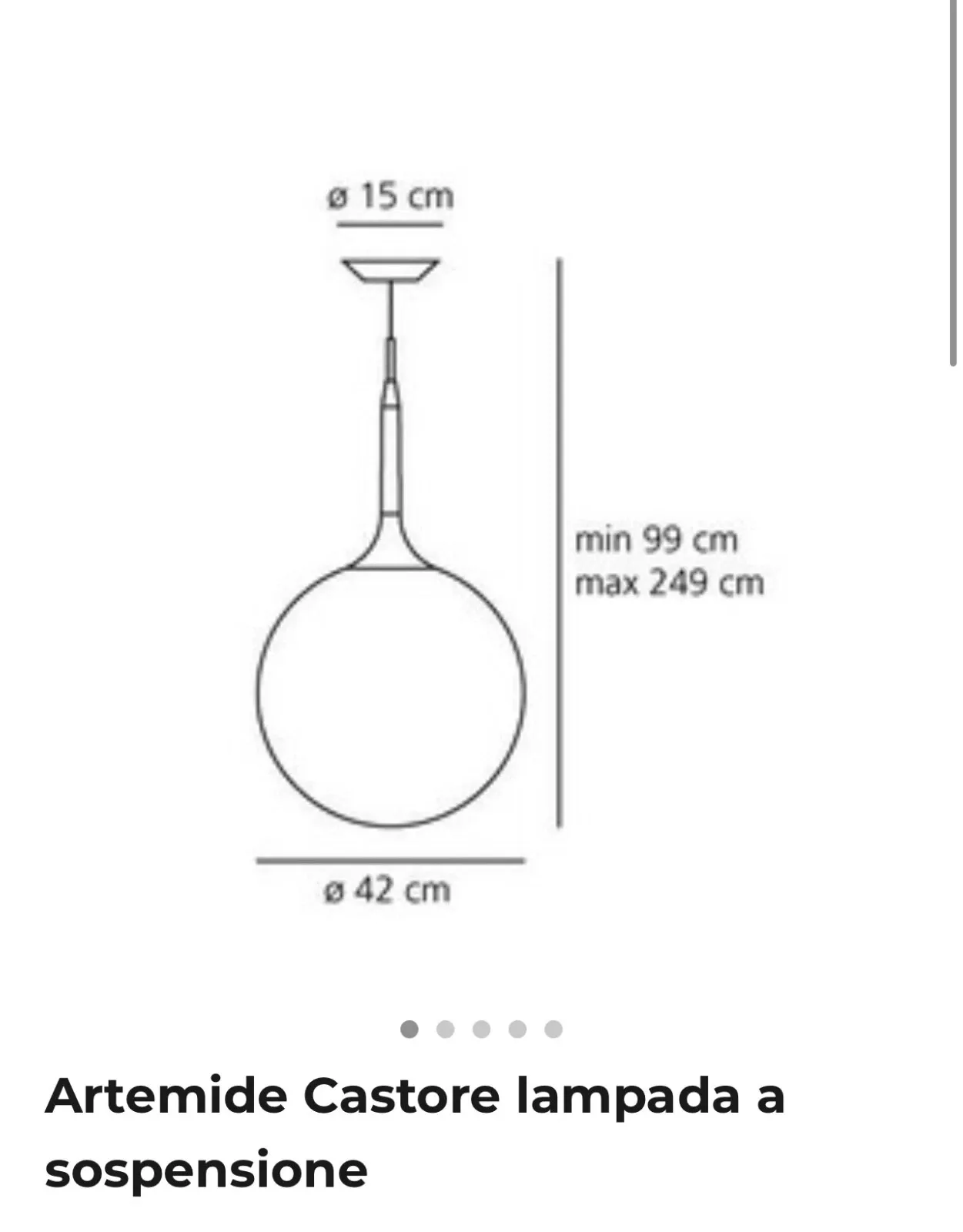 Dimensioni: Diametro 42 cm, Altezza max 250 cm.