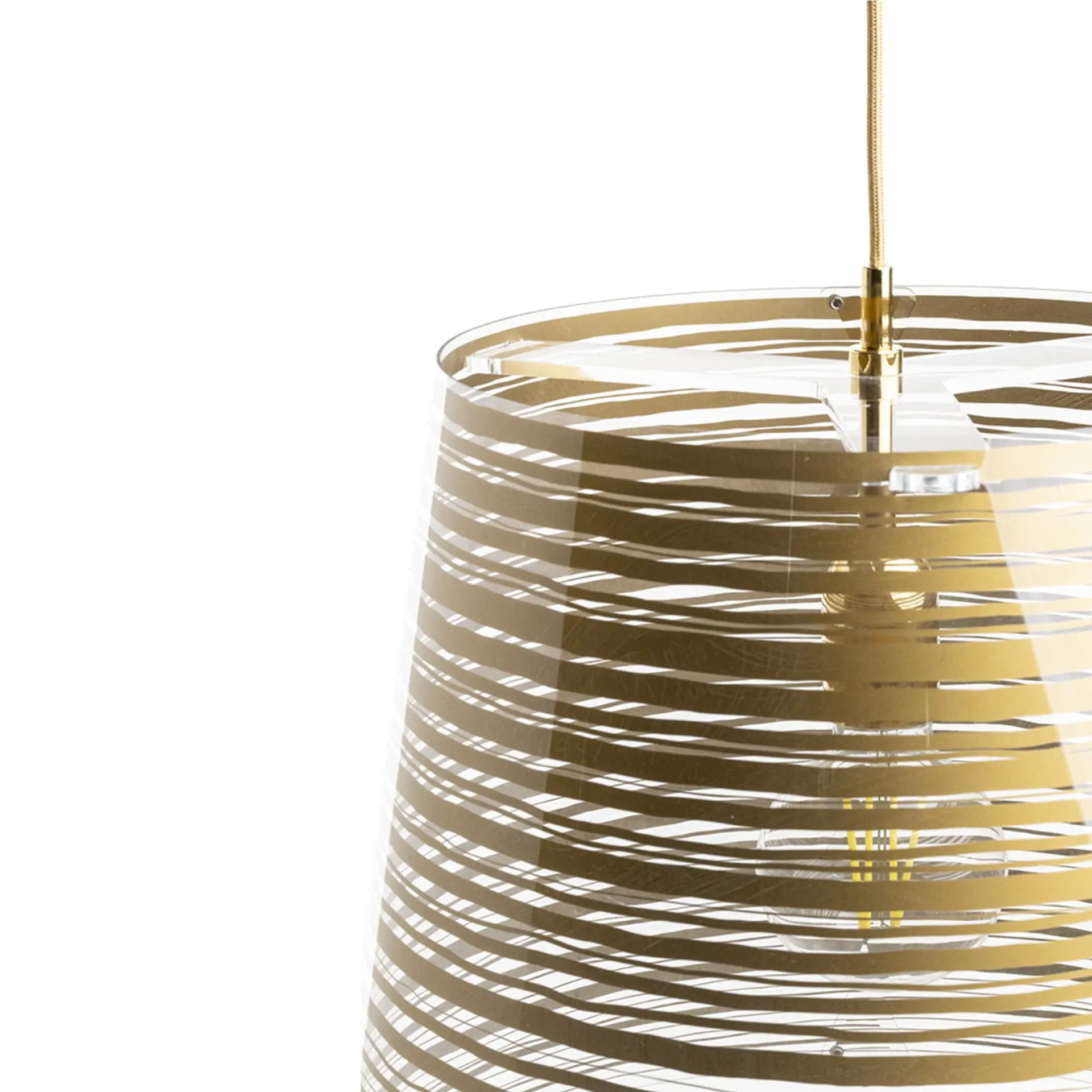 L'illuminazione diventa pezzo di arredamento di forte impatto decorativo anche per merito delle cromie dei materiali con cui le lampade sono state realizzate: se non hai intenzione di ricreare un'ambientazione eccessivamente vivace, ma allo stesso tempo non vuoi rinunciare a un tocco di colore, il brand propone diverse proposte abbellite da qualche particolare colorato ma armonioso; la lampada qui presente è di colore oro e si rivelerà capace di attirare l'attenzione in modo brioso ma equilibrato.