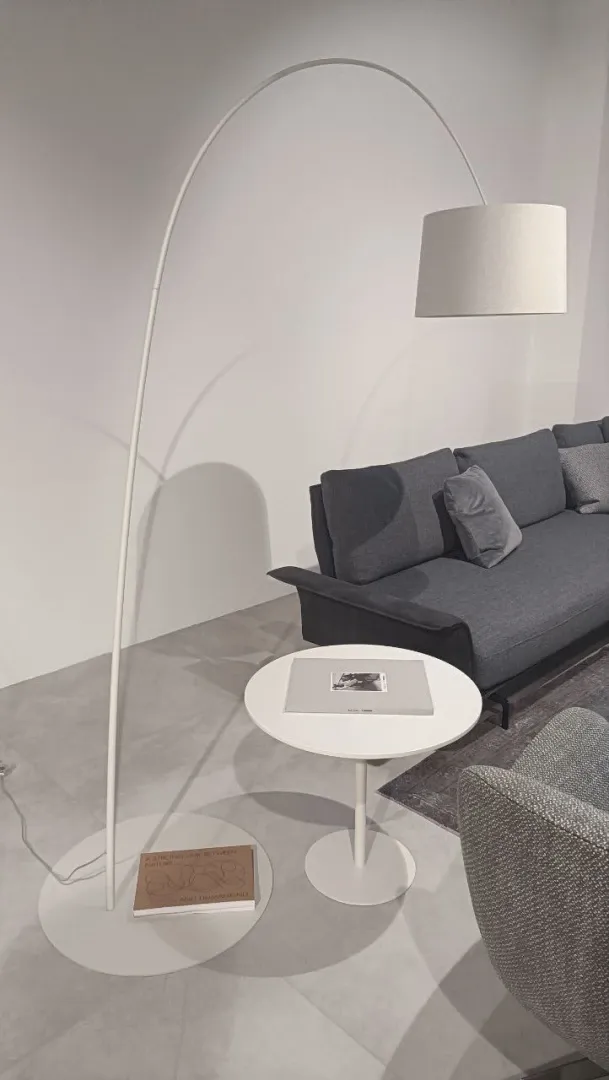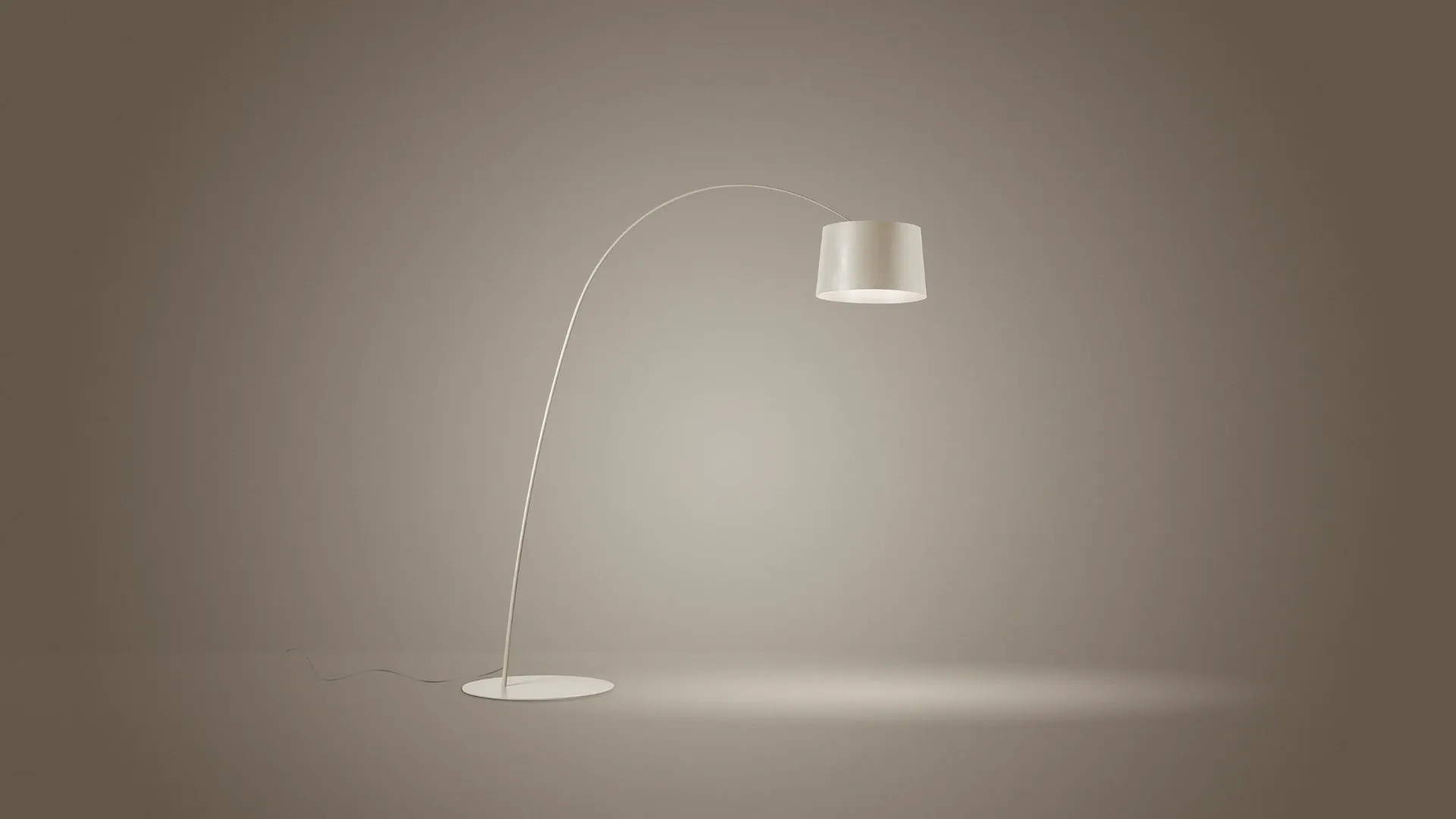 Una linea fine e arcuata, un segno flessibile che come per magia sostiene nell aria un ampio diffusore: è Twiggy, una lampada da terra ad arco che si piega a molteplici esigenze di ambientazione e illuminazione.