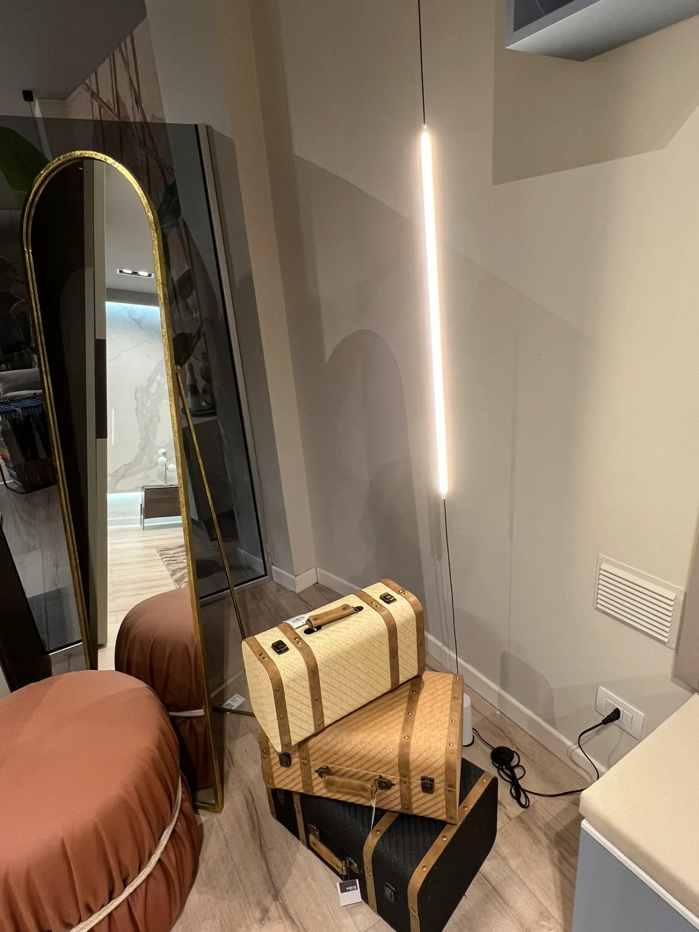 Filo è una lampada a sospensione dal design essenziale e contemporaneo. Il rosone, il corpo luce e la base a terra sono in metallo, abbinati ad un diffusore in pc opale satinato che diffonde una luce calda e avvolgente. Una soluzione minimal e raffinata, perfetta per ambienti moderni e ricercati.