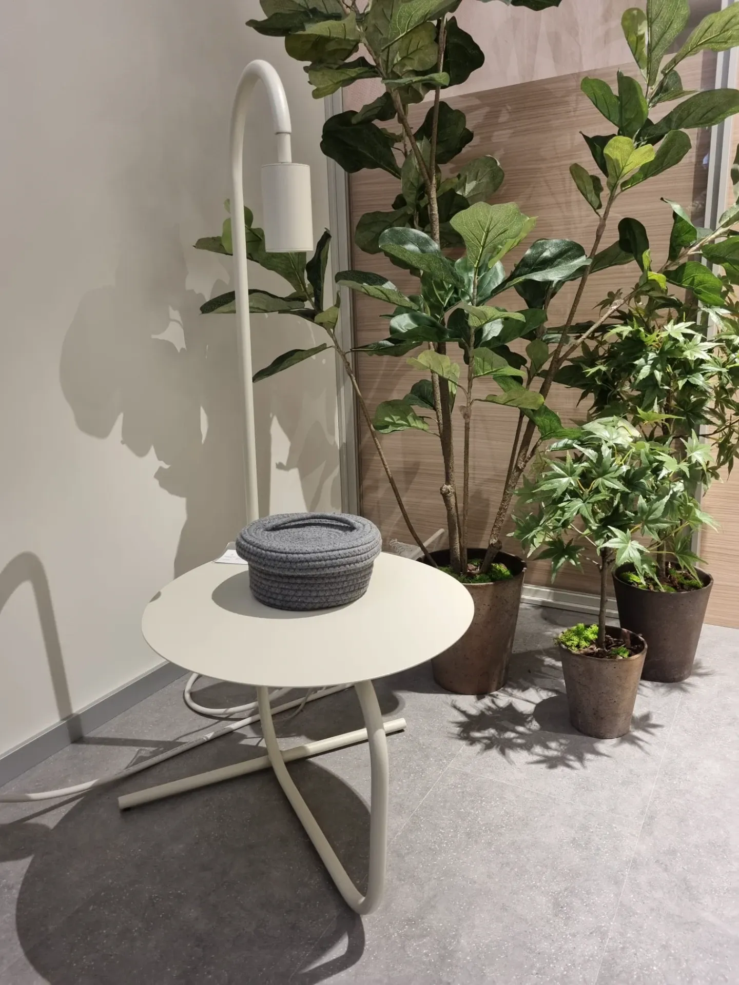 La nuova lampada da terra in metallo verniciato a polvere può essere usata anche come comodo tavolino o comodino. Amica dei momenti di lettura e relax in generale, è composta da un piccolo ripiano tondo, sormontato da un braccio in metallo con proiettore regolabile. Disponibile nella versione light grey.