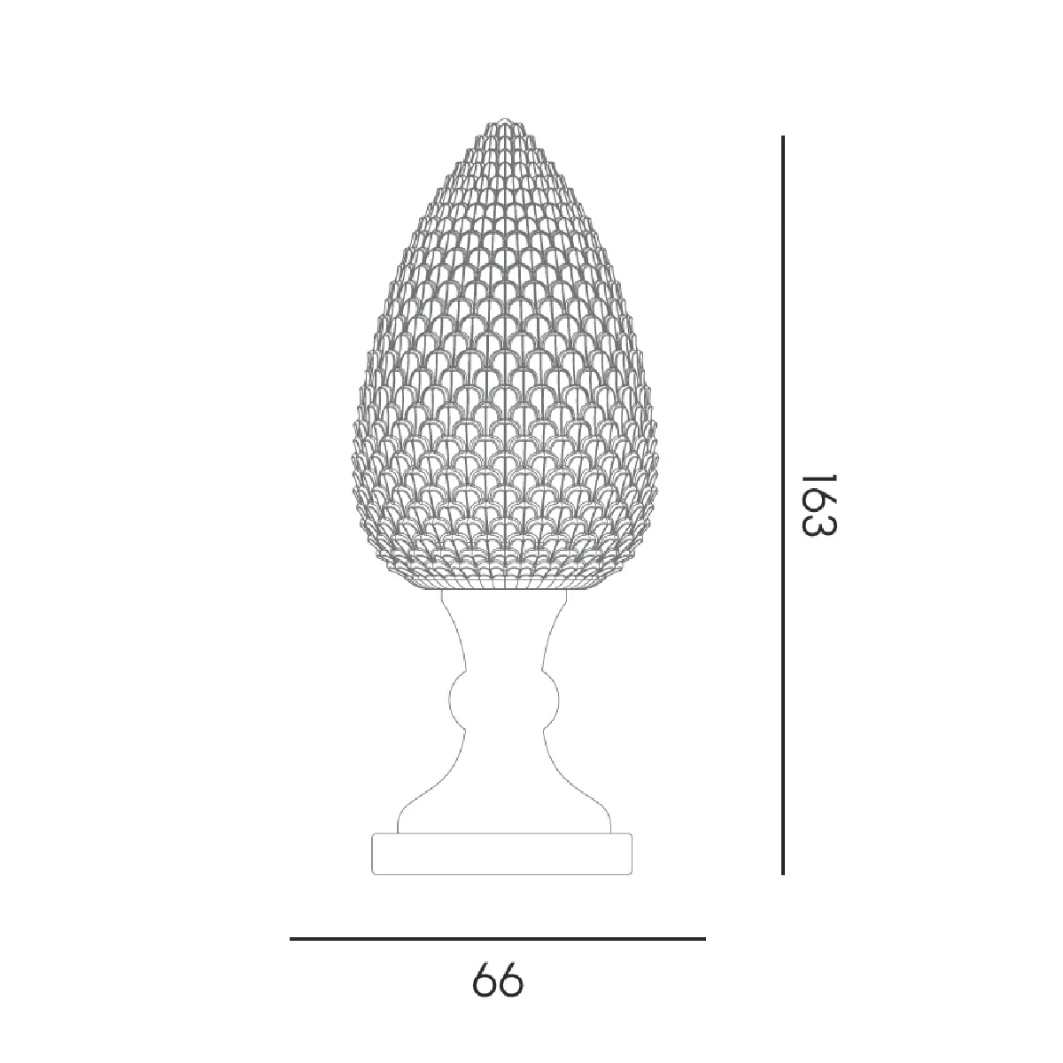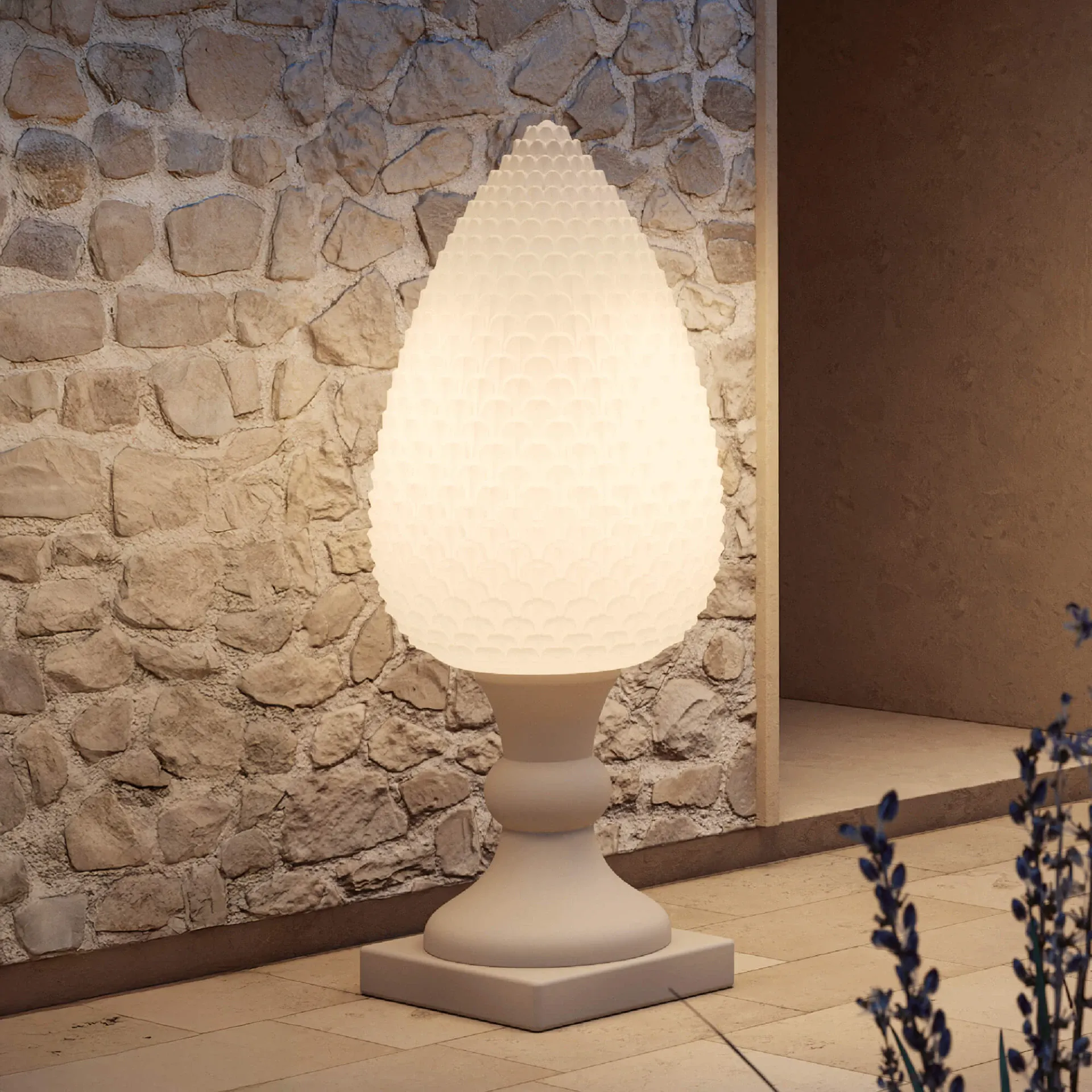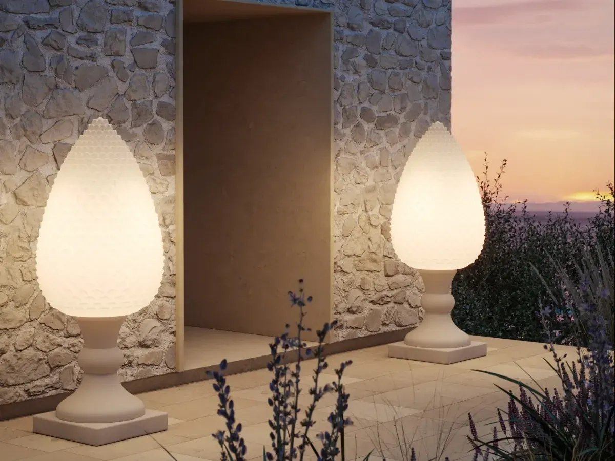 Pina è una lampada di grandi dimensioni composta da due parti: la pigna, che può essere illuminata, e il basamento. Oltre ad illuminare, può essere anche complemento d'arredo, aggiungendo un tocco di particolarità agli ambienti.