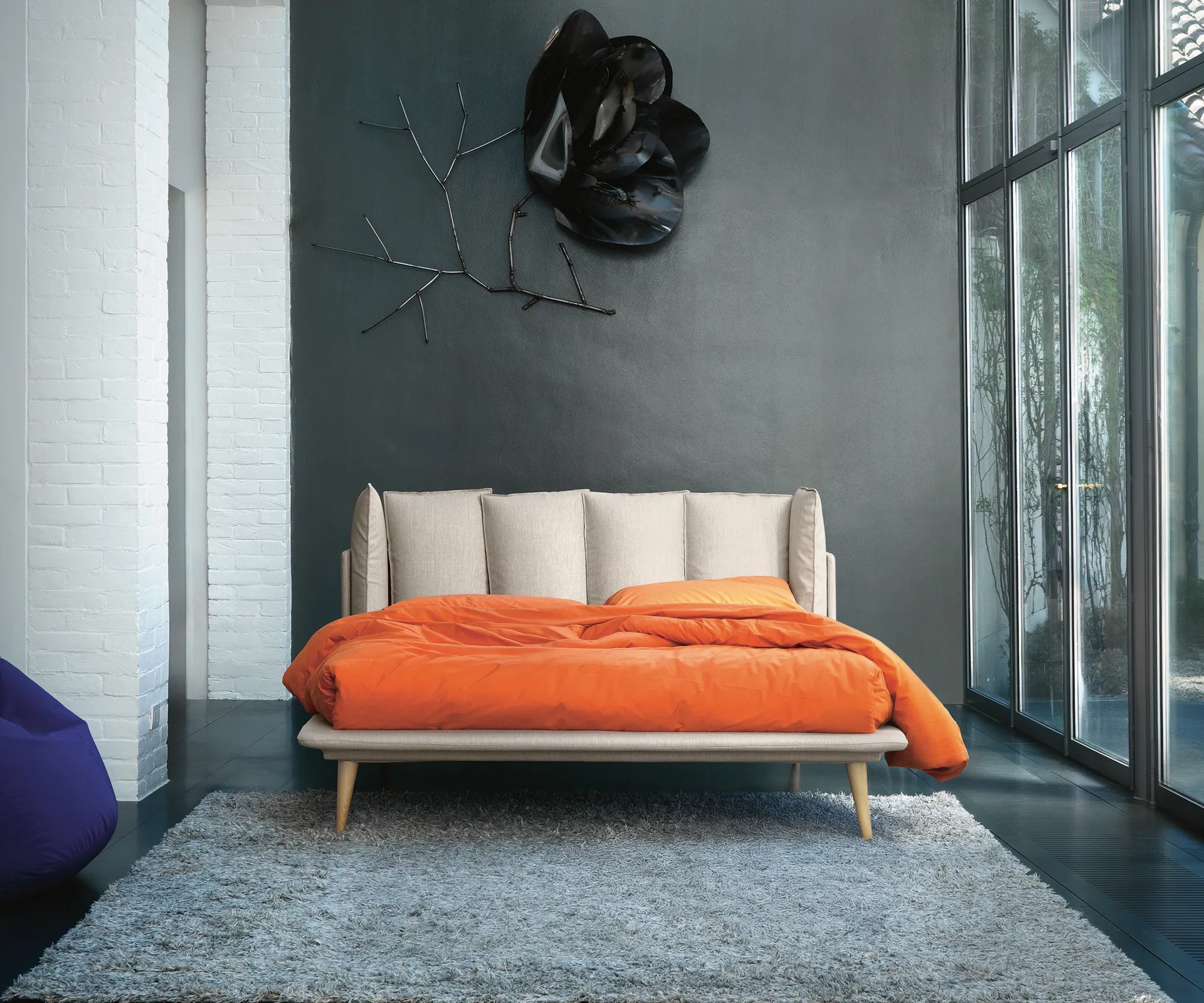 I letti possono essere abbinati ai comodini, oppure potremo scegliere di abbinare finiture o materiali appositamente contrastanti: nella camera sono i protagonisti dell’arredamento e il letto Matrimoniale Birdland qui disponibile, con un ribasso imbattibile, non fa certamente eccezione.