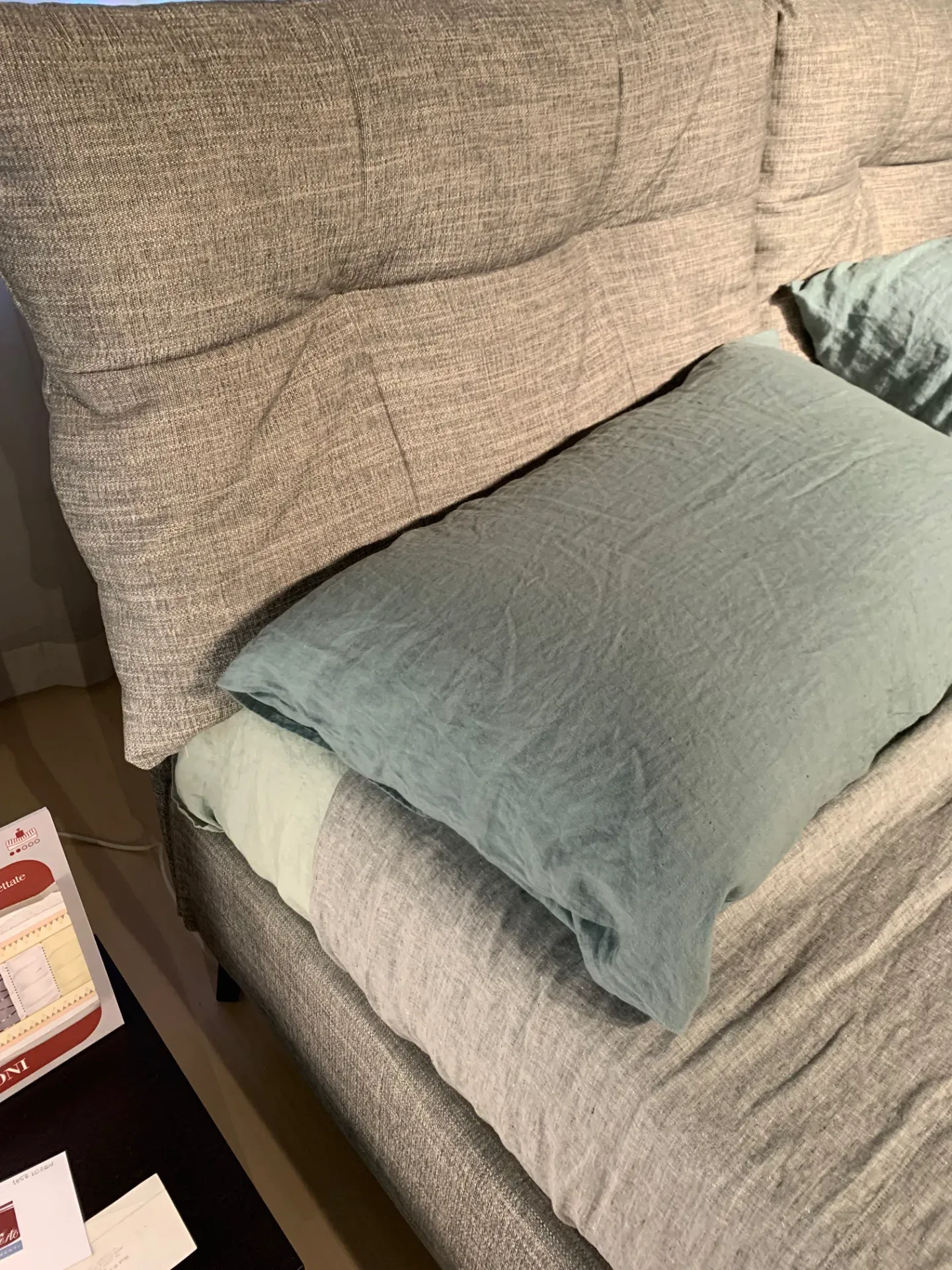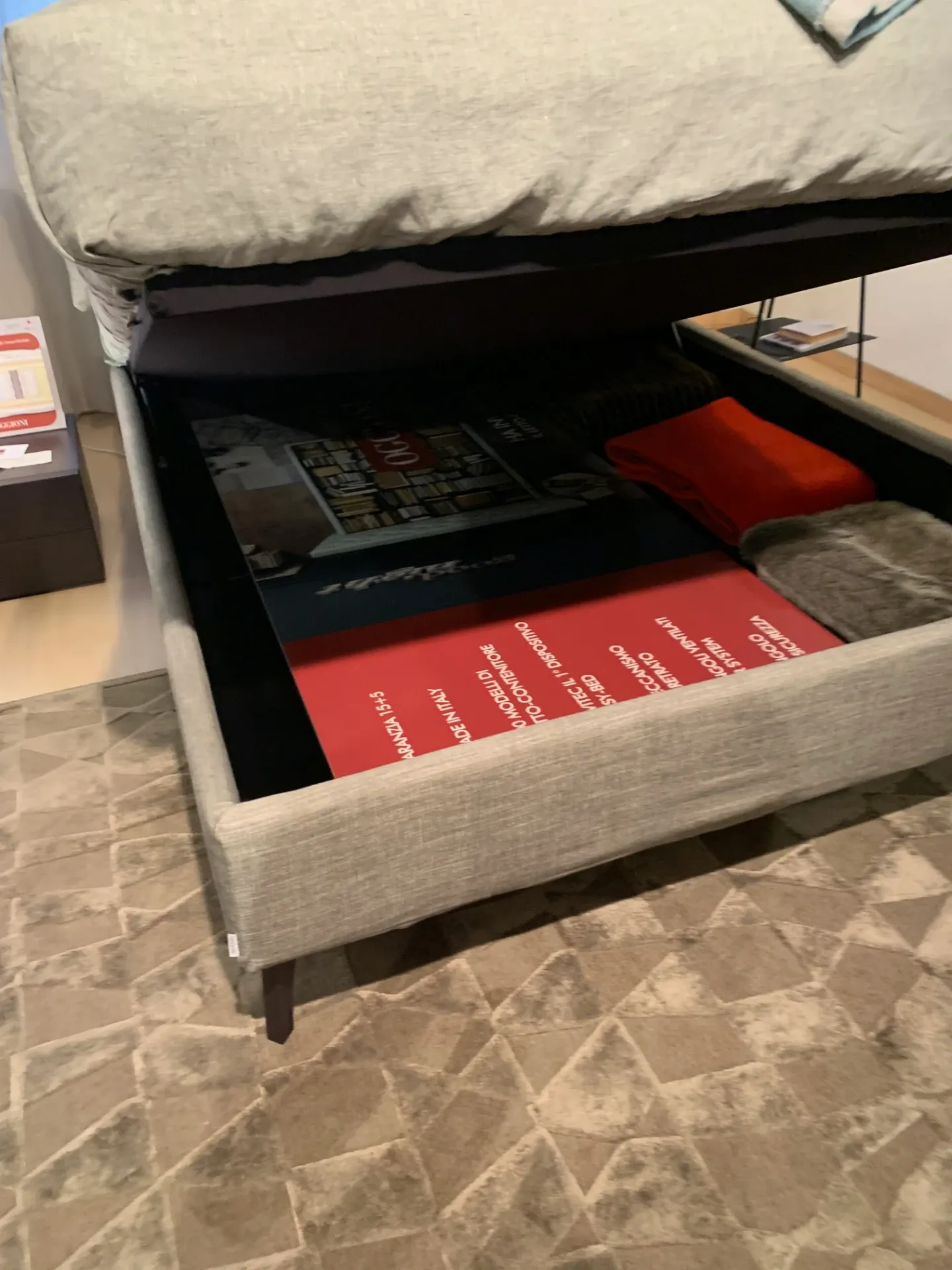il letto e' in categoria extra con un bellissimo tessuto grigio , i piedi sono extra promozioni , il materasso e' omaggio modello Oggioni LGT 165x200
