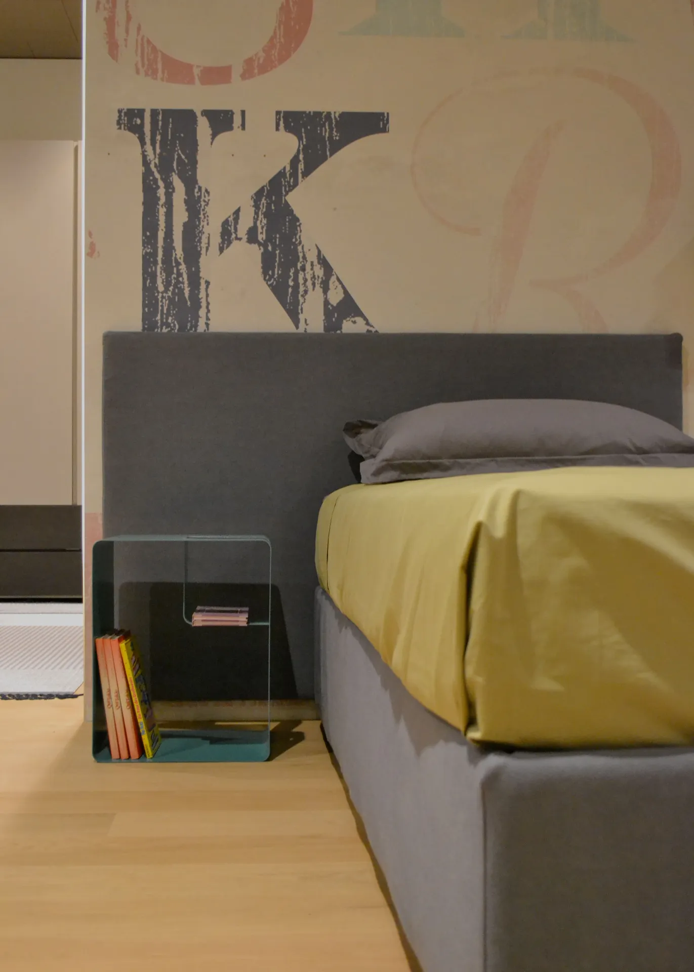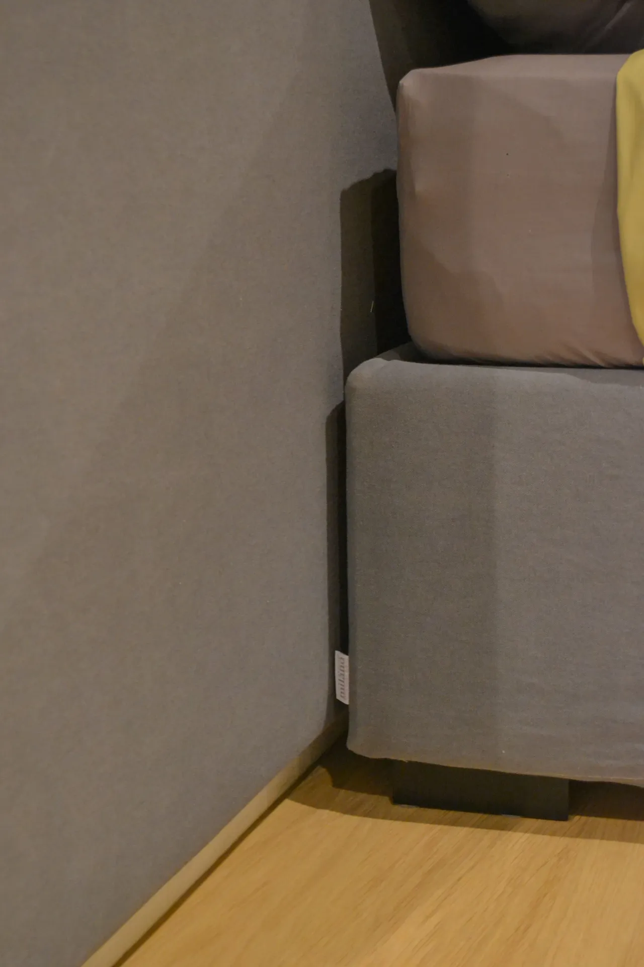 Abbinato alla testata imbottita Pacific (155 × 96 cm), il letto assume una presenza elegante e accogliente. A differenza delle testate tradizionali, Pacific non è collegata alla struttura del letto, ma si fissa direttamente al muro, offrendo un aspetto leggero e pulito, ideale per chi desidera un design essenziale ma sofisticato.
