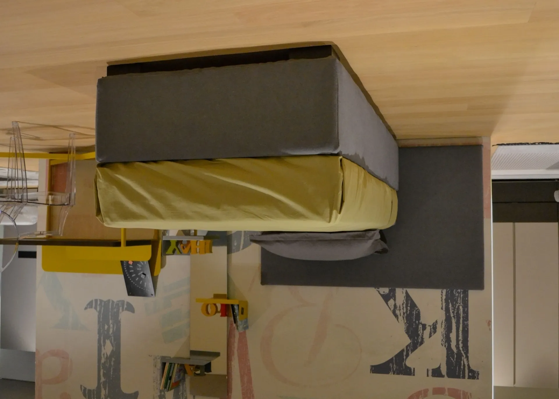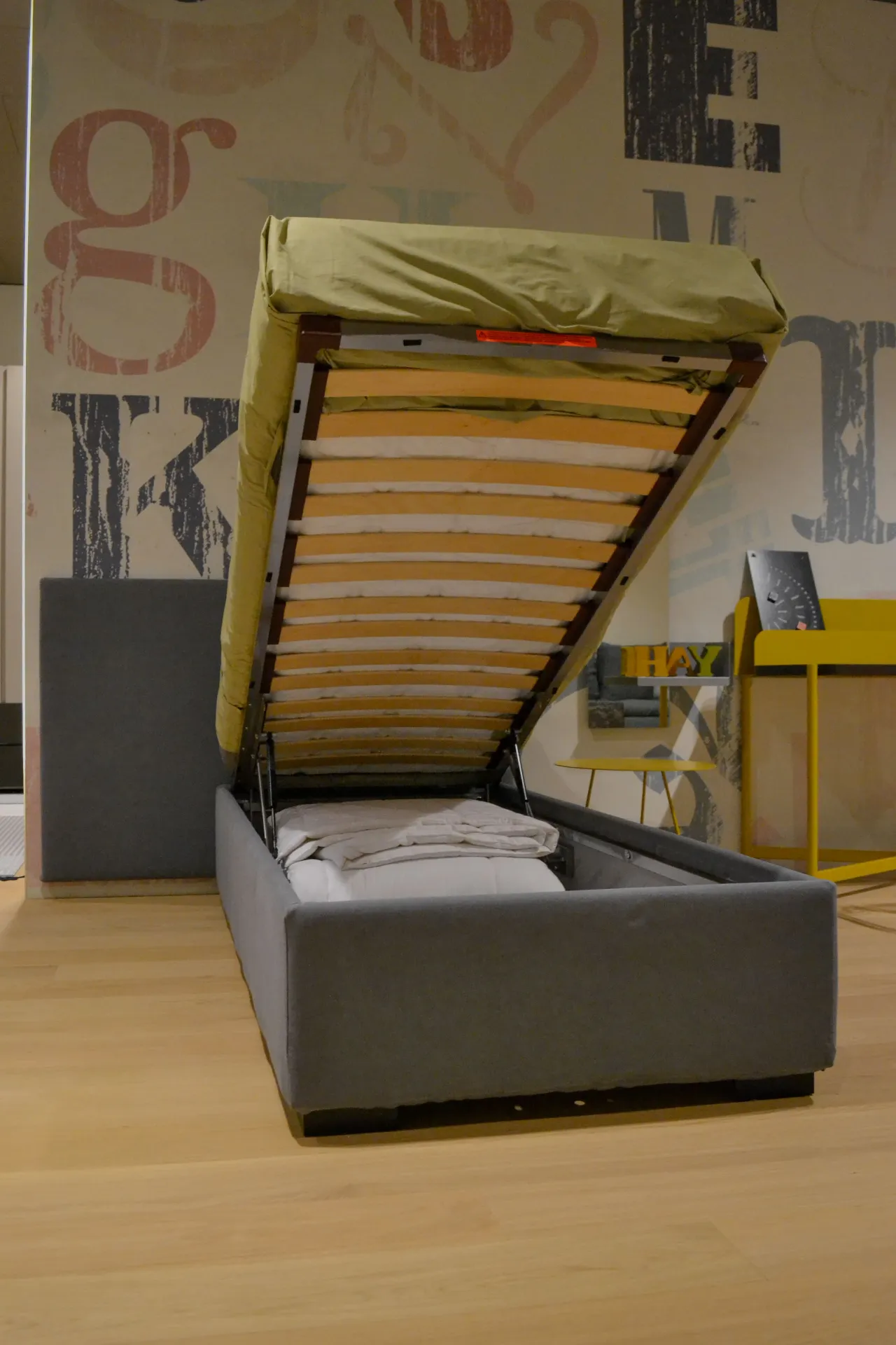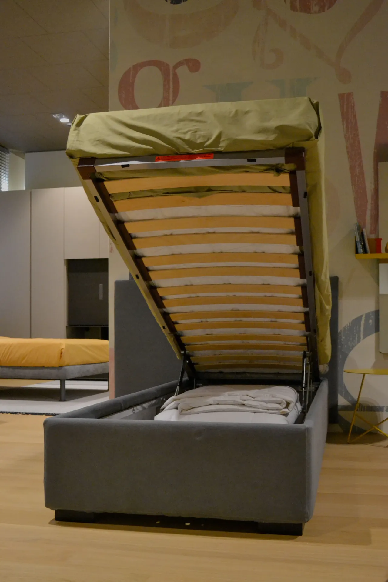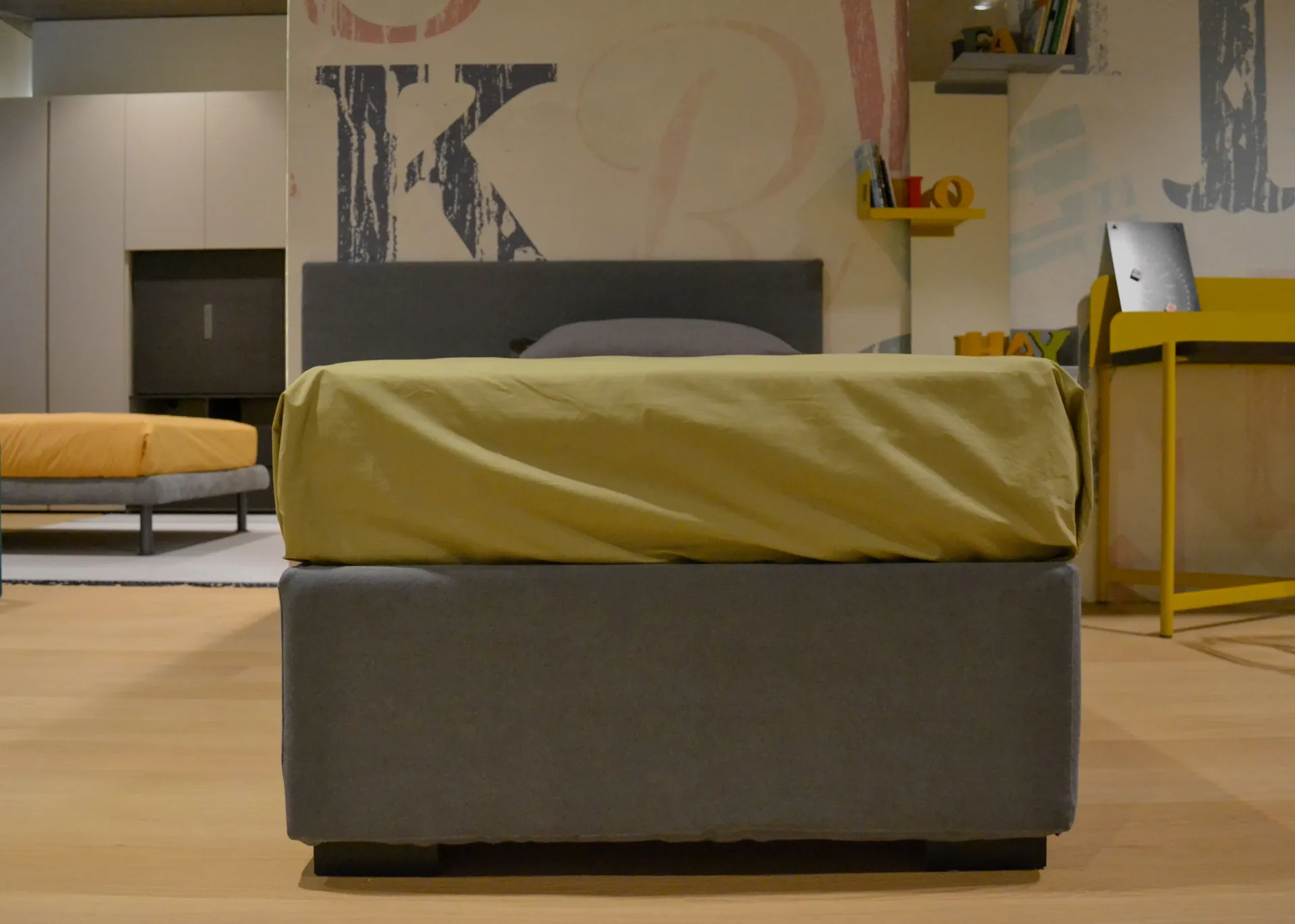 Il suo sommier compatto (93 × 205 cm, altezza 37 cm) ospita un ampio contenitore integrato, perfetto per riporre biancheria, coperte o accessori, ottimizzando al massimo lo spazio disponibile.
