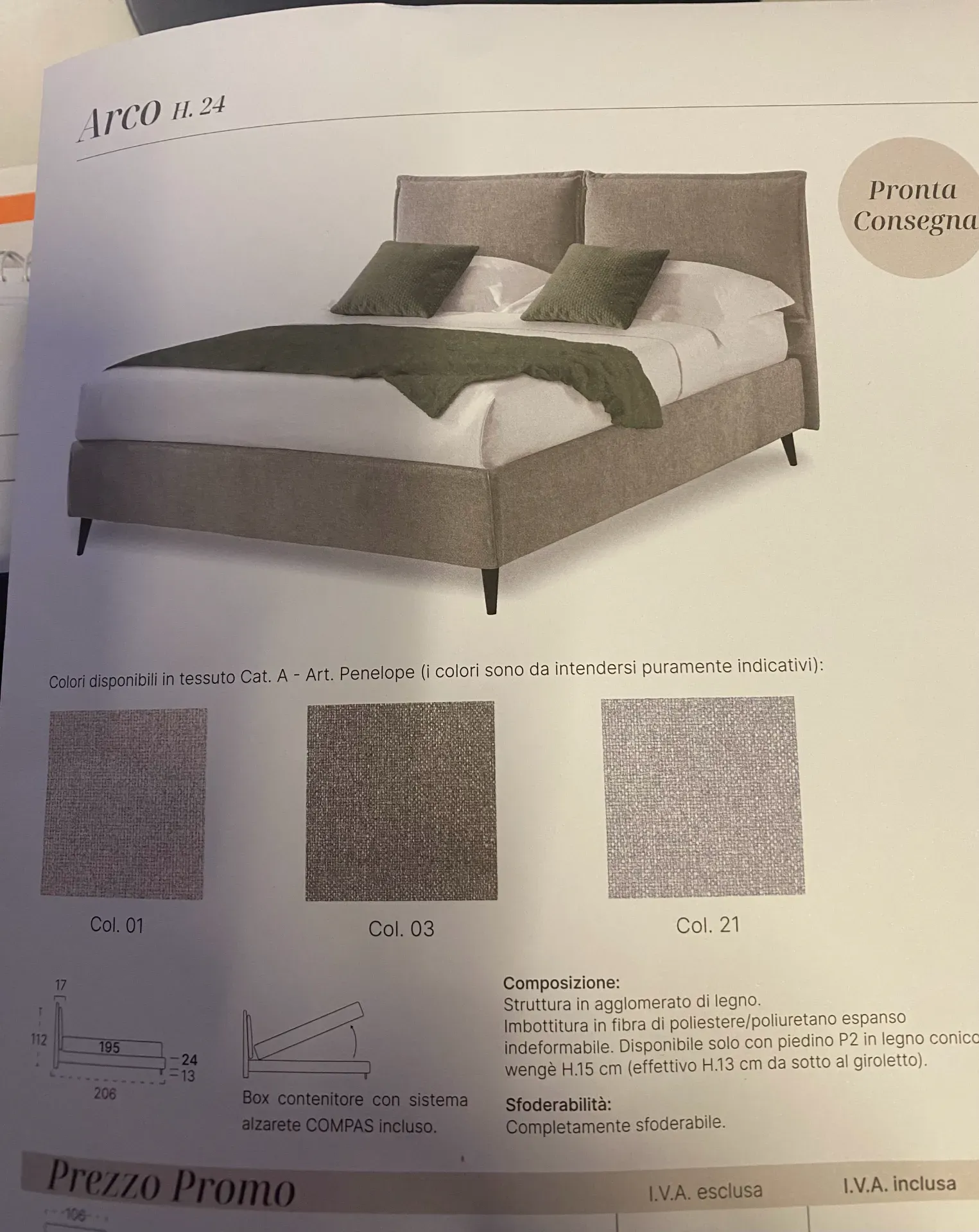 LETTO ARCO CON CONTENITORE COMPLETAMENTE SFODERABILE ,CON PIEDINI RIALZATI X MATERASSO 160 X 190 POSSIBILITA' 3 RIVESTIMENTI TRASPORTO INCLUSO 100 KM PIANO TERRA MONTAGGIO ESCLUSO