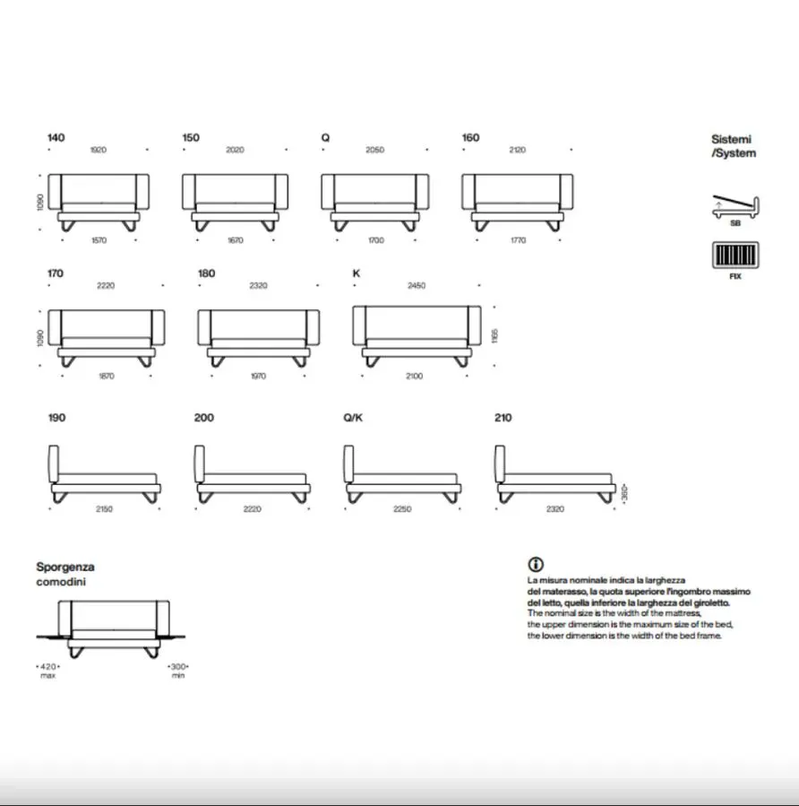 Dimensioni lettoL 177 × P 212 × H 109 cm